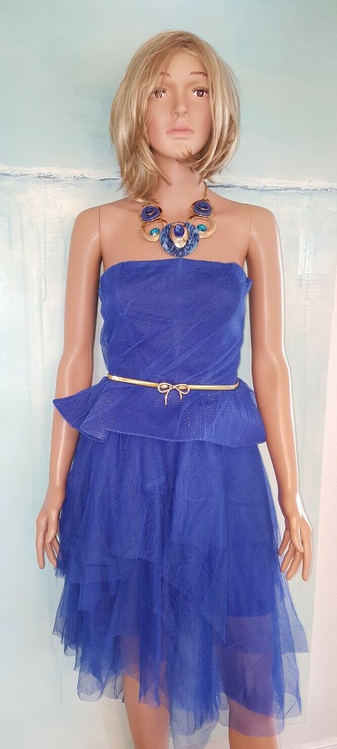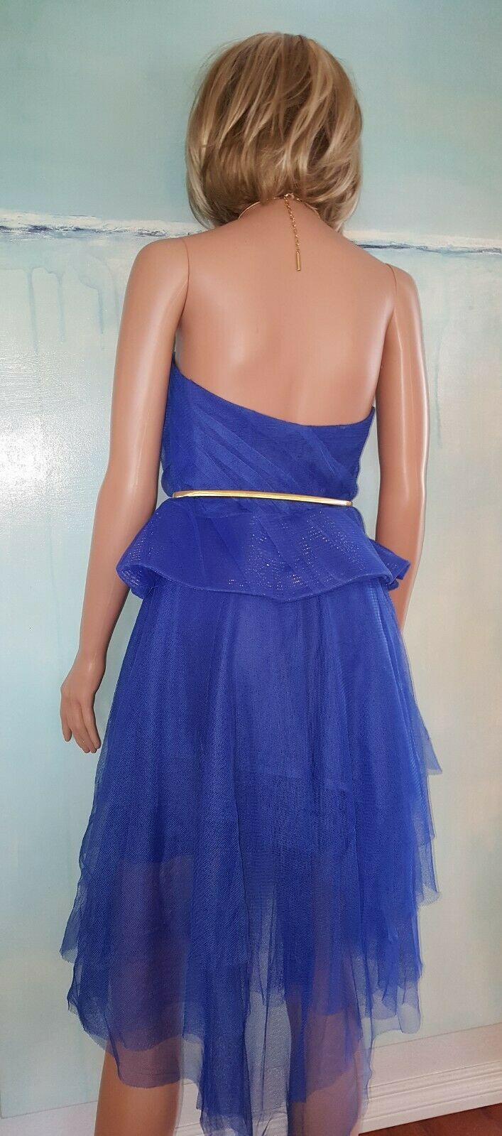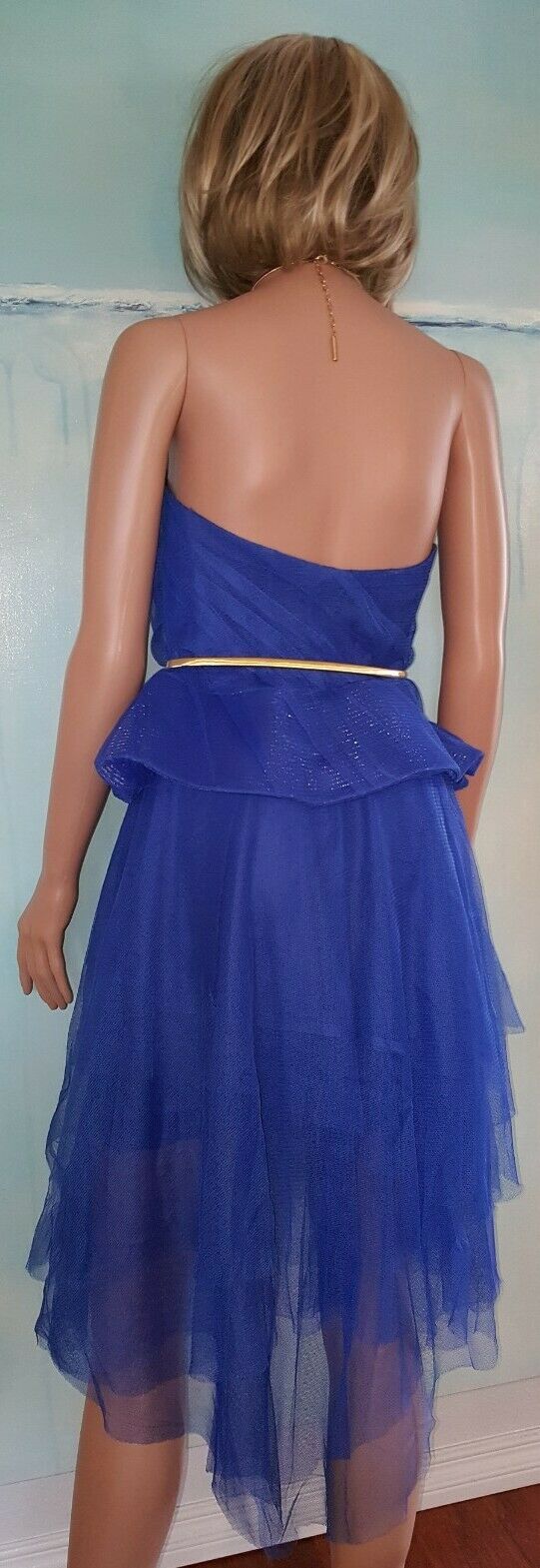 $3,000 MONIQUE LHUILLIER STUNNING BLUE SILK TULLE PEPLUM RUNWAY DRESS GOWN US 4