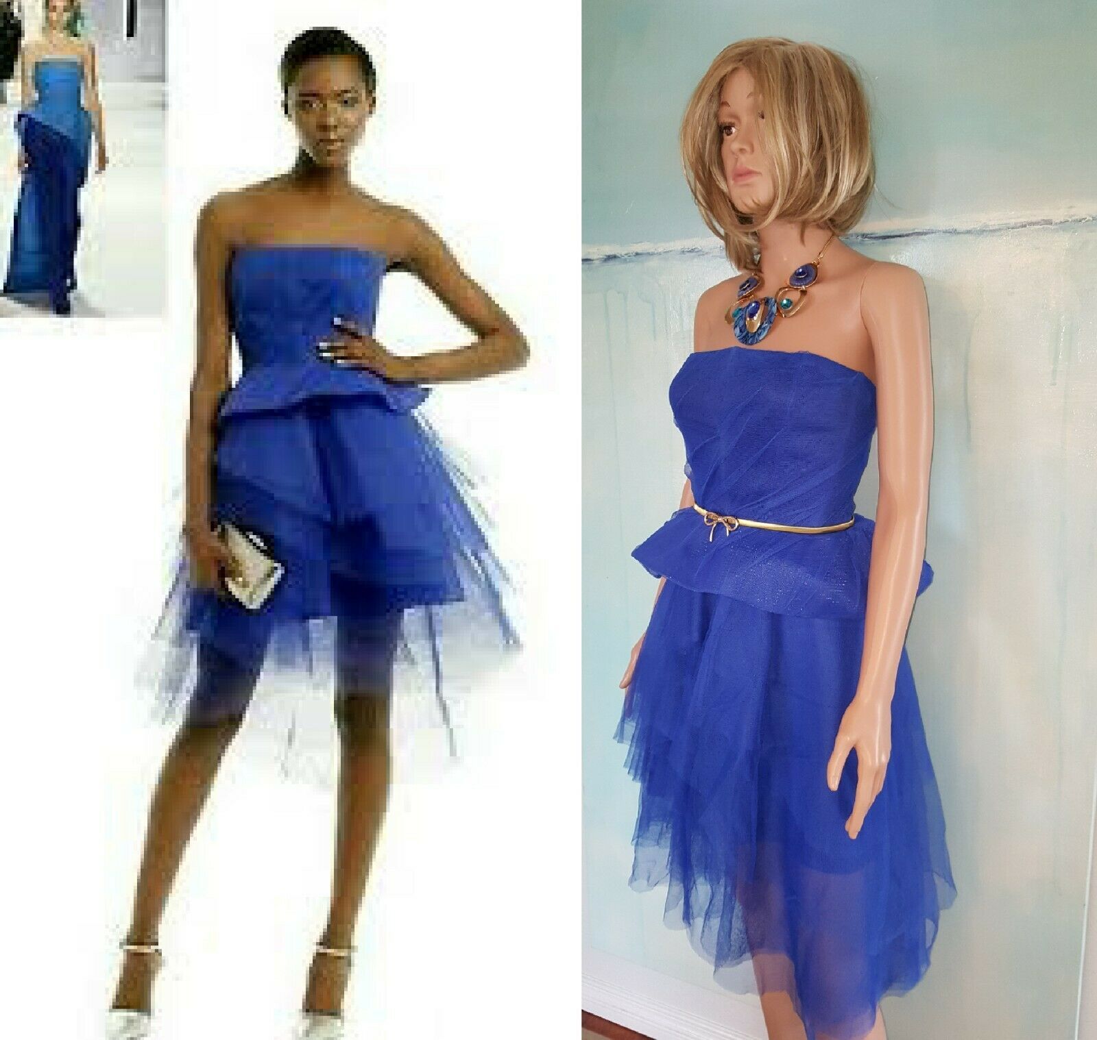 $3,000 MONIQUE LHUILLIER STUNNING BLUE SILK TULLE PEPLUM RUNWAY DRESS 4
