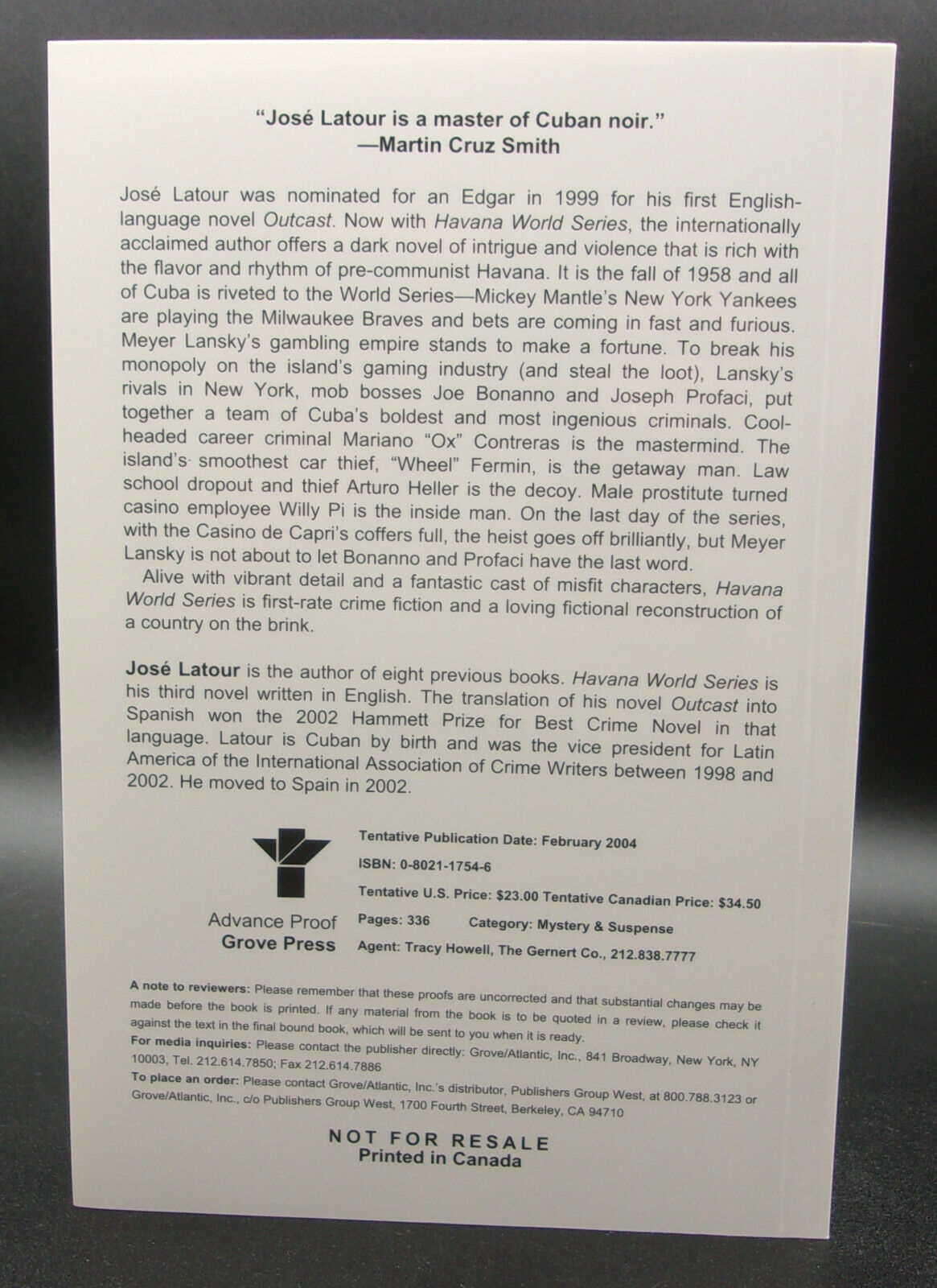 Jose Latour HAVANA WORLD SERIES First edition 2003 Advance Reading Copy Unread!