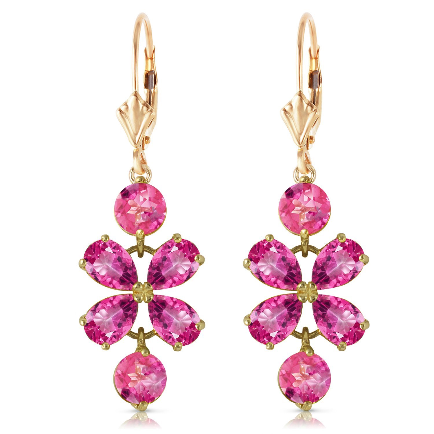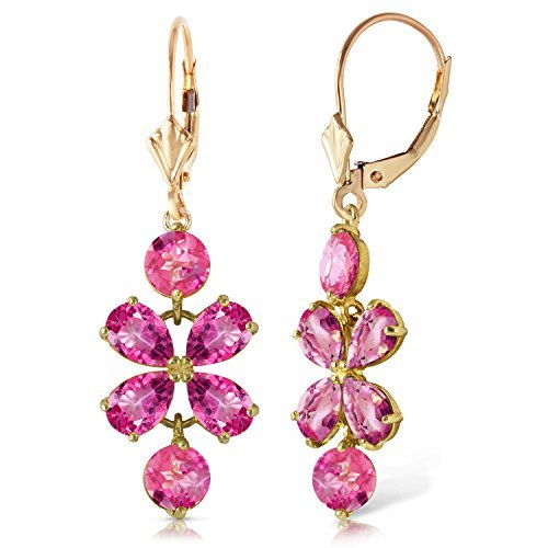 Galaxy Gold GG 14K Solid Yellow Gold Natural Pink Topaz Dangle Drop Earrings for