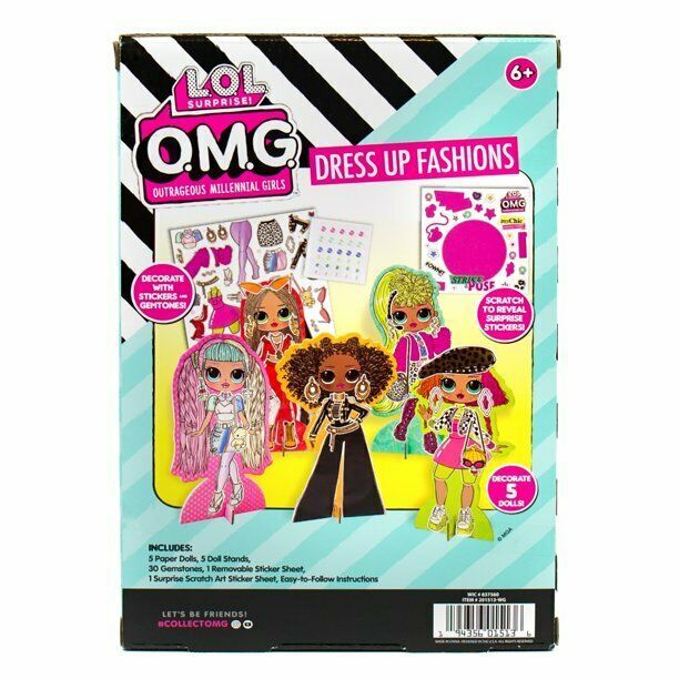 Set Includes: 5 L.O.L. Surprise! O.M.G. Die-Cut Dress-Up Dolls, 5 Doll Stands, 1 Repositionable Sticker Sheet, 1 Scratch Art Sticker Sheet, 30 Adhesive Colorful Gemstones, Easy-to-Follow Instructions