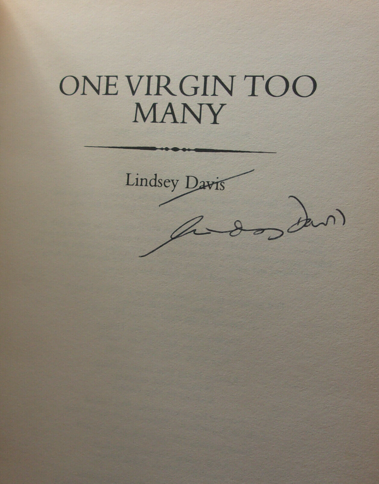 Lindsey Davis ONE VIRGIN TOO MANY First British edition SIGNED DJ Rome Mystery