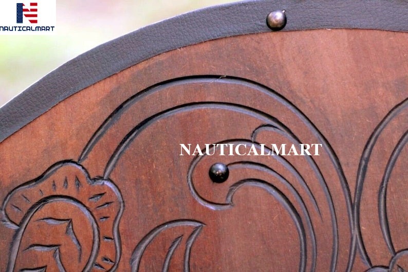 The Shield Would Be Perfect For Renaissance Festival In Your Area, Some Backyard Brawling Between Friends, Larp Events Or Historical Reenactments. The Shield Features A Handle On The Reverse. The Face Of The Shield Features Viking Pattern.
