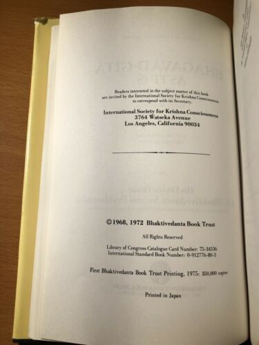 FIRST BHAKTIVEDANTA BOOK TRUST PRINTING, 1975; 350,000 COPIES STATED