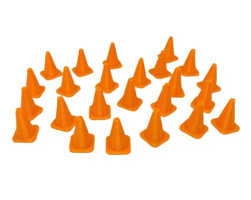 Traffic Cones ( Packs of 24 ) 1:64 Scale Perfect addition for any tabletop wargames or dioramas. Each cone is 11 mm tall and are stackable. 3D Printed. Figure is shown for scale reference and is not included.