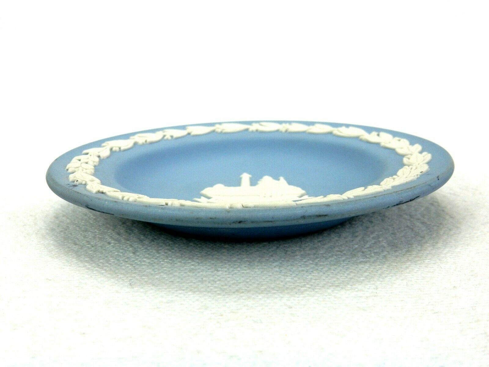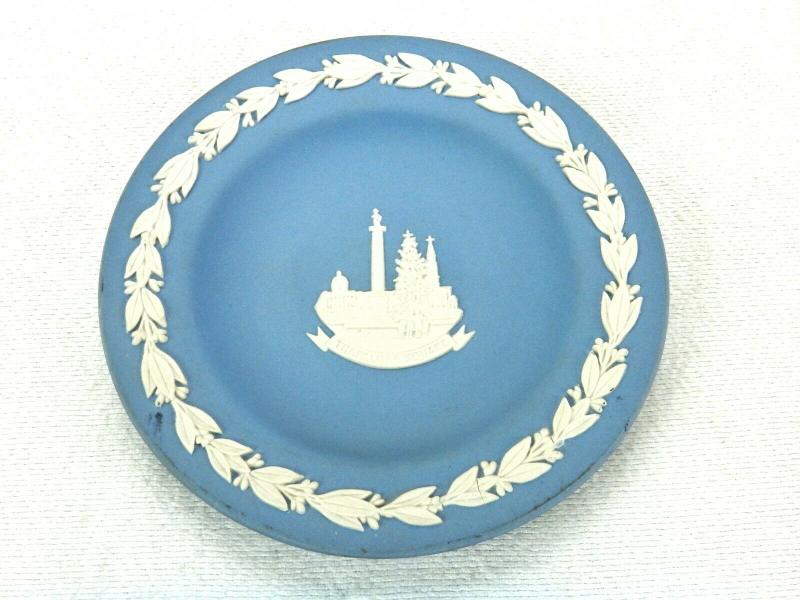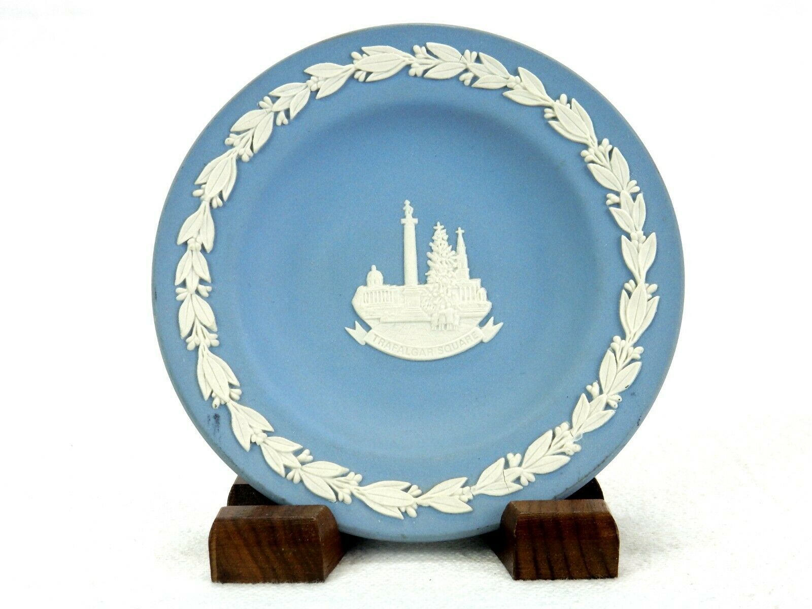 Wedgwood 4.5" Plate, Trinket/Pin Dish - Trafalgar Square, Blue Jasperware, 1950s