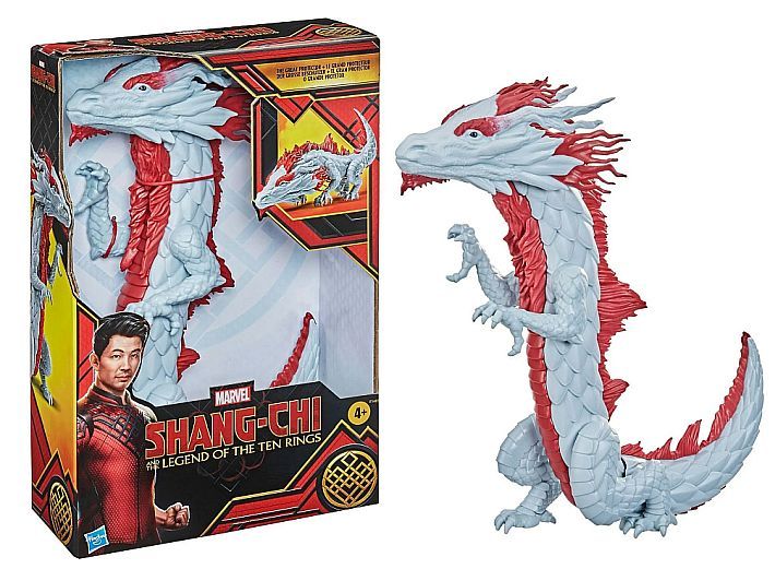 Description: Shang-Chi and the Ten Rings The Great Protector Mega Creature Action Figure: Save the world with The Great Protector Mega Creature Action Figure! This mighty dragon is sure to delight fans of the movie. With a little imagination, kids can make this red-eyed Great Protector dragon figure rise to help; this good luck symbol stands at a dramatic 11-inches tall, extends to 16-inches when down on all fours, and has ice blue scales and red markings, Ages 4+. 120321-120321P-T2