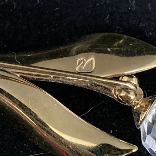 Swarovski Crystal Gold Tone Tulip Flower Pin Swan Hallmark 1.5? Long.