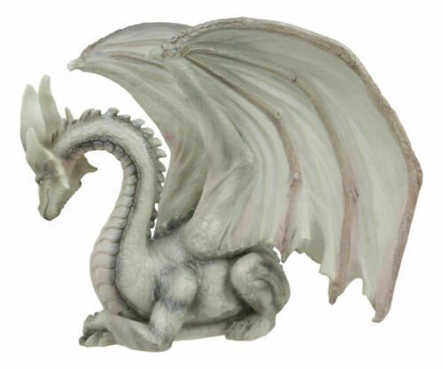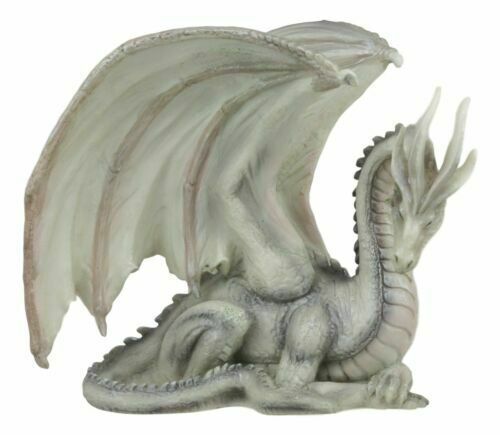 Resting Wise Old White Medieval Dragon Statue 8"L Serpent Drake Dragon At Repose