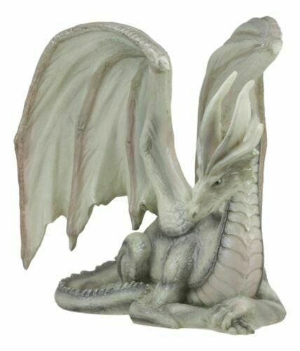 โข This White Wise Old Dragon at rest statue measures at L: 7.75" x W: 7" x H: 7" (inches)