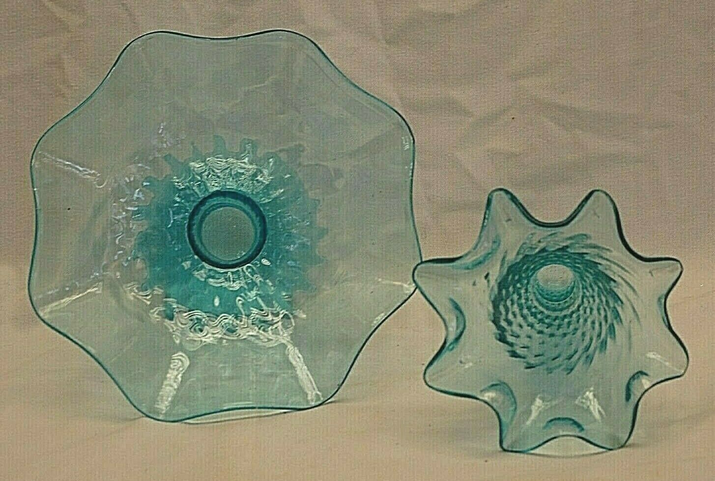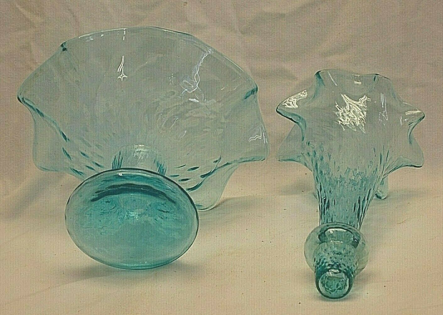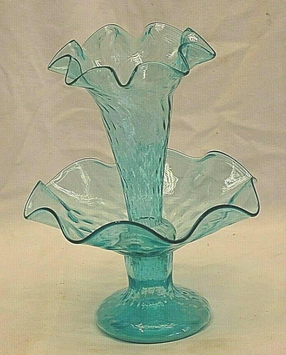 Fenton Epergne Blue Art Glass Table Centerpiece 2 Piece Ruffed Edges Unmarked