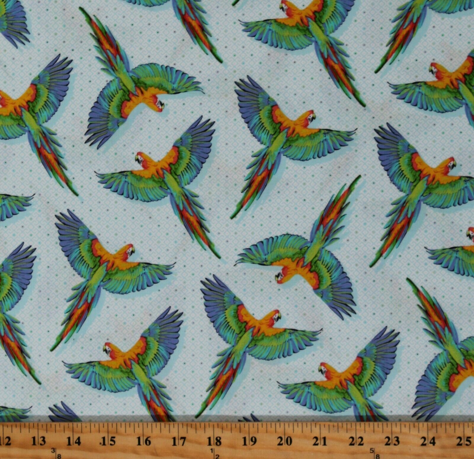 Cotton Macaws Parrots Tropical Birds Tula Pink Daydreamer Collection Macaw You Later in Cloud Cotton Fabric Print by the Yard (PWTP170.CLOUD)