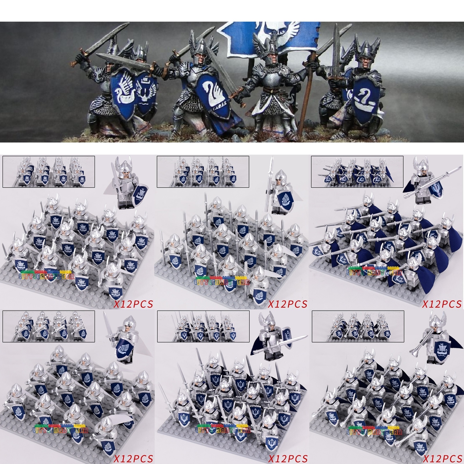 12pcs Swan Knights of Dol Amroth Gondor Army The Lord of the Rings Minifigures