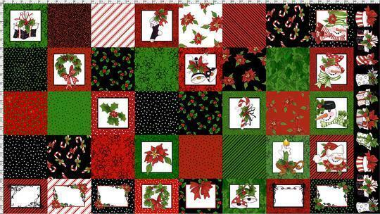 23" X 44" Panel Christmas Wreaths Bells Candles Holly Snowman Poinsettias Candy Canes Snow Lady Medley Multicolor Cotton Fabric Panel (692-401)