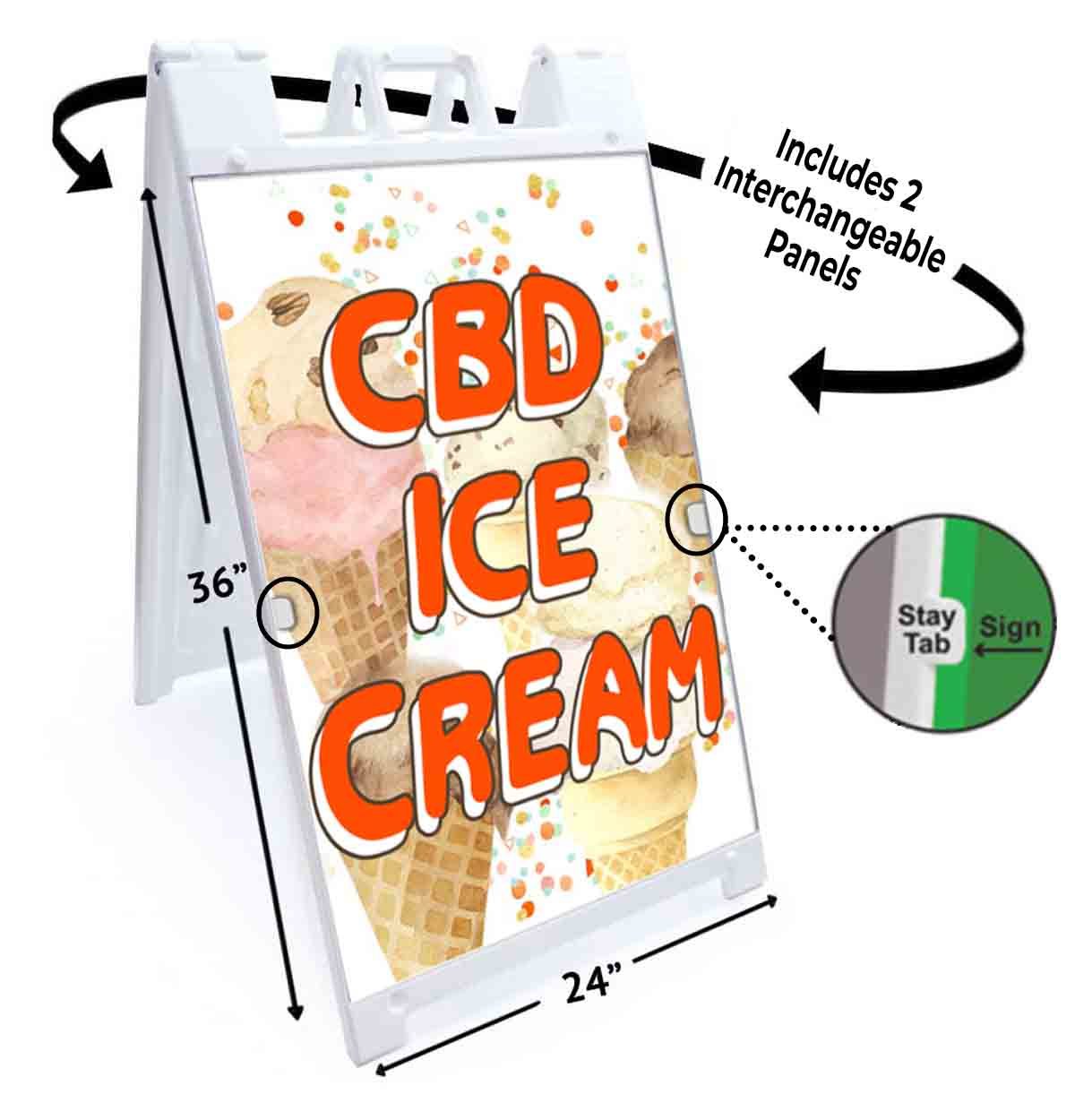 CBD ICE CREAM Signicade 24x36 Aframe Sidewalk Decal Sign Banner MEDICAL CBD FOOD