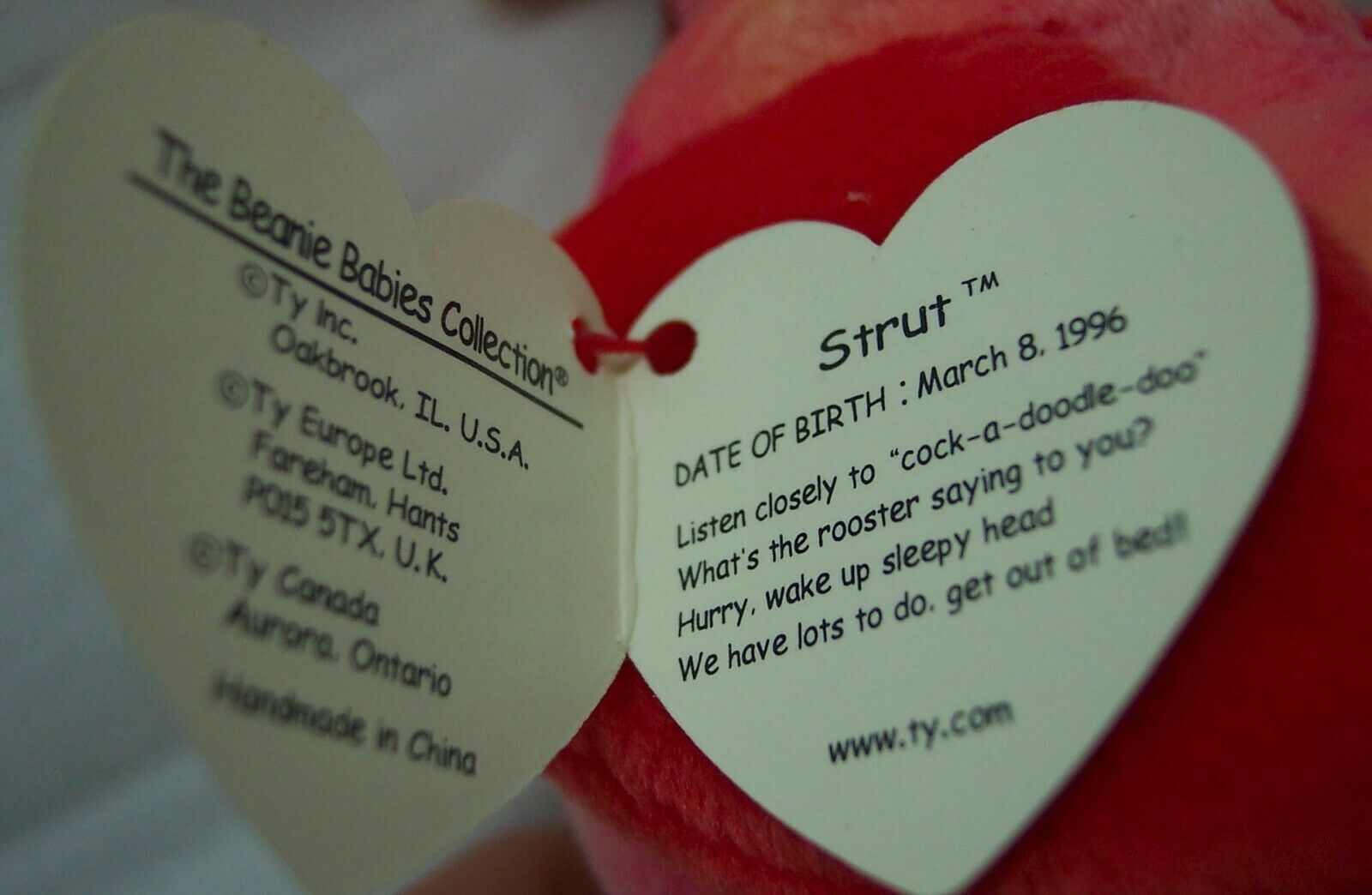This is a Beanie Baby STRUT THE COLORFUL ROOSTER Plush Stuffed Animal. Made by TY in 1996. It is 5 1/2 inches tall. It is NEW with the tag. Combine auctions to save on shipping. Please contact me if you need to make other payment arrangements. ELAG