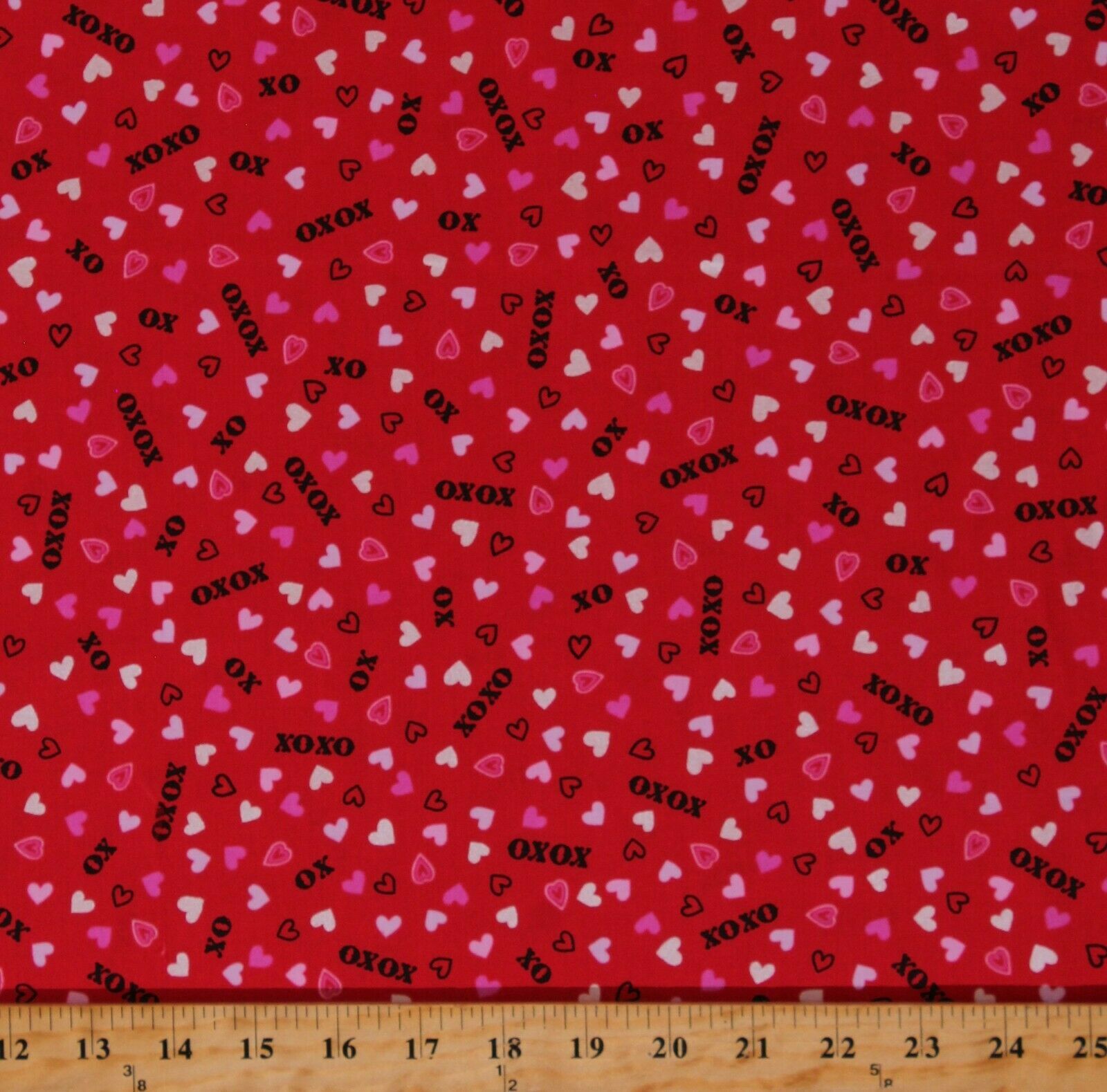 Cotton Hearts Valentine's Day Love XOXO Red Fabric Print by the Yard D369.39