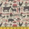 Cotton BBQ Food Cooking Signs Grilling White Fabric Print by the Yard D587.77