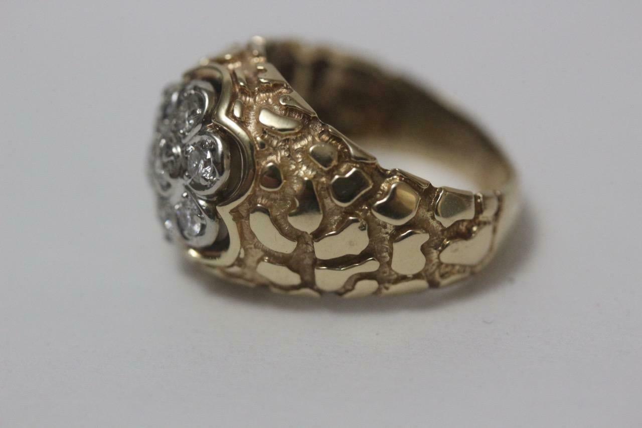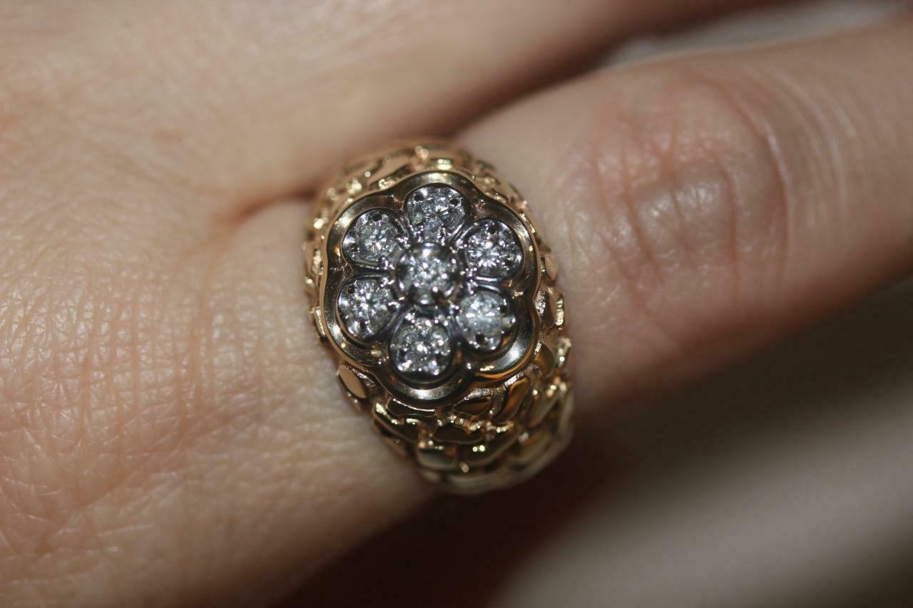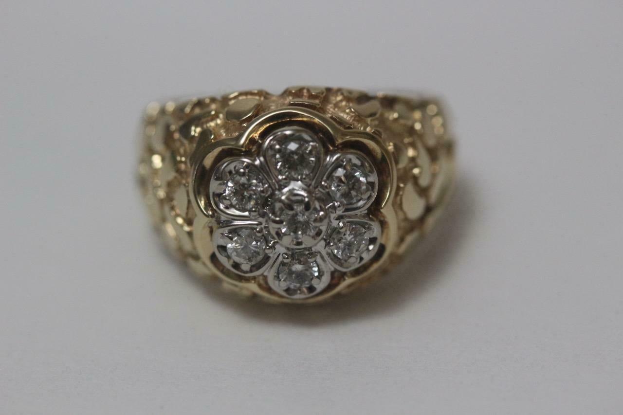 14K Yellow Gold Nugget Ring 7 Diamond Cluster 7.8 Grams -Size 8-