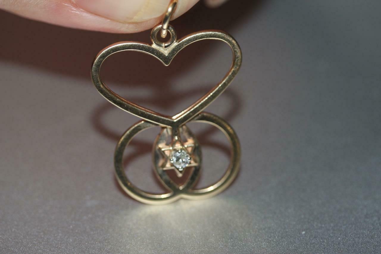 Fine 14K Yellow Gold Heart Interlocking Circles Star of David Diamond Pendant
