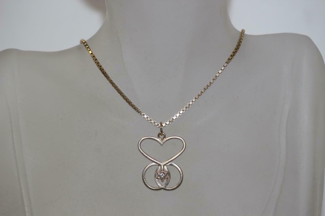 Vintage 14K Yellow Gold Heart Interlocking Circles Star-of David Diamond Pendant