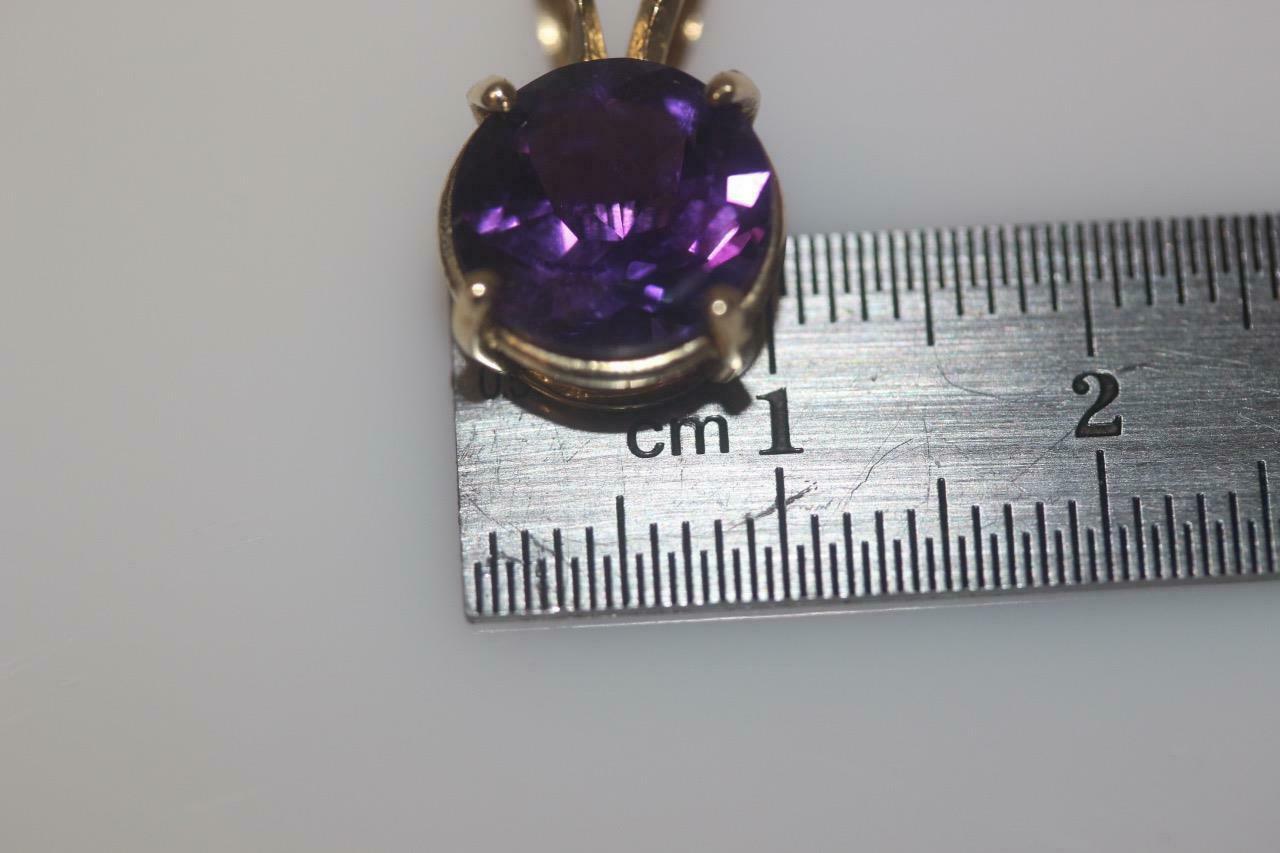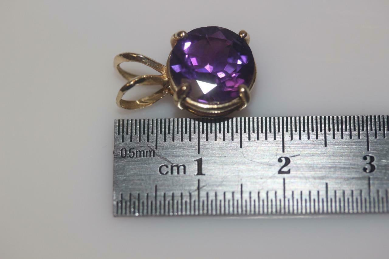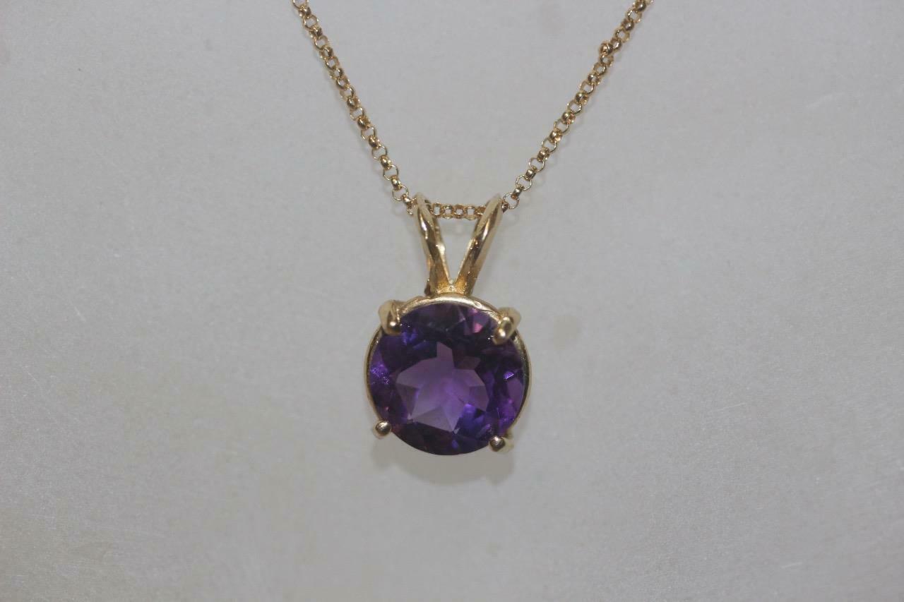 Offered for sale is a lovely round amethyst pendant, crafted in 14k yellow gold.