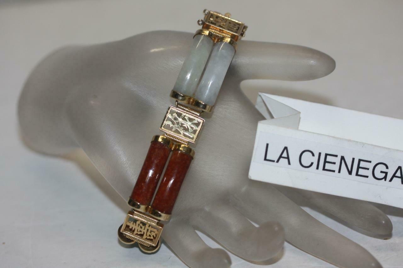 14K Yellow Gold Multi Color Jade Bars Chinese Symbol Bracelet Fits 7" Wrist VTG!