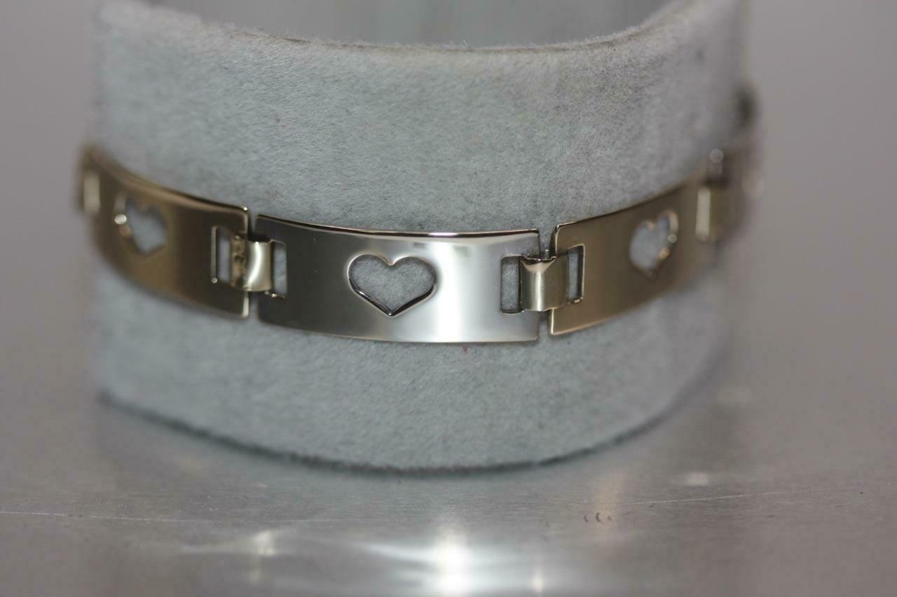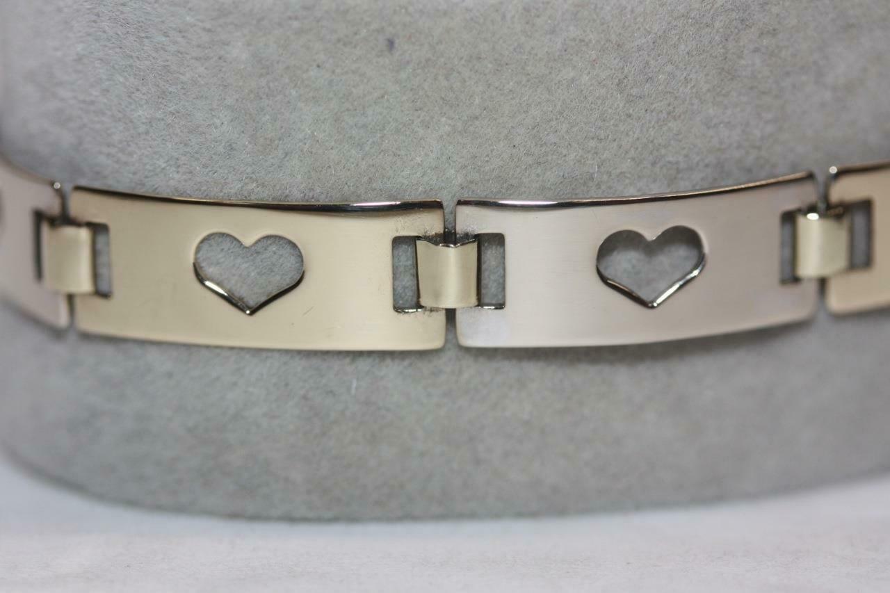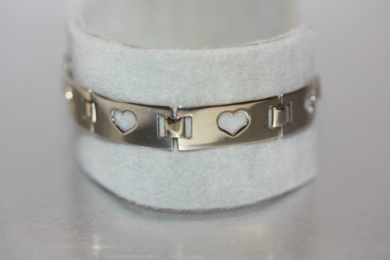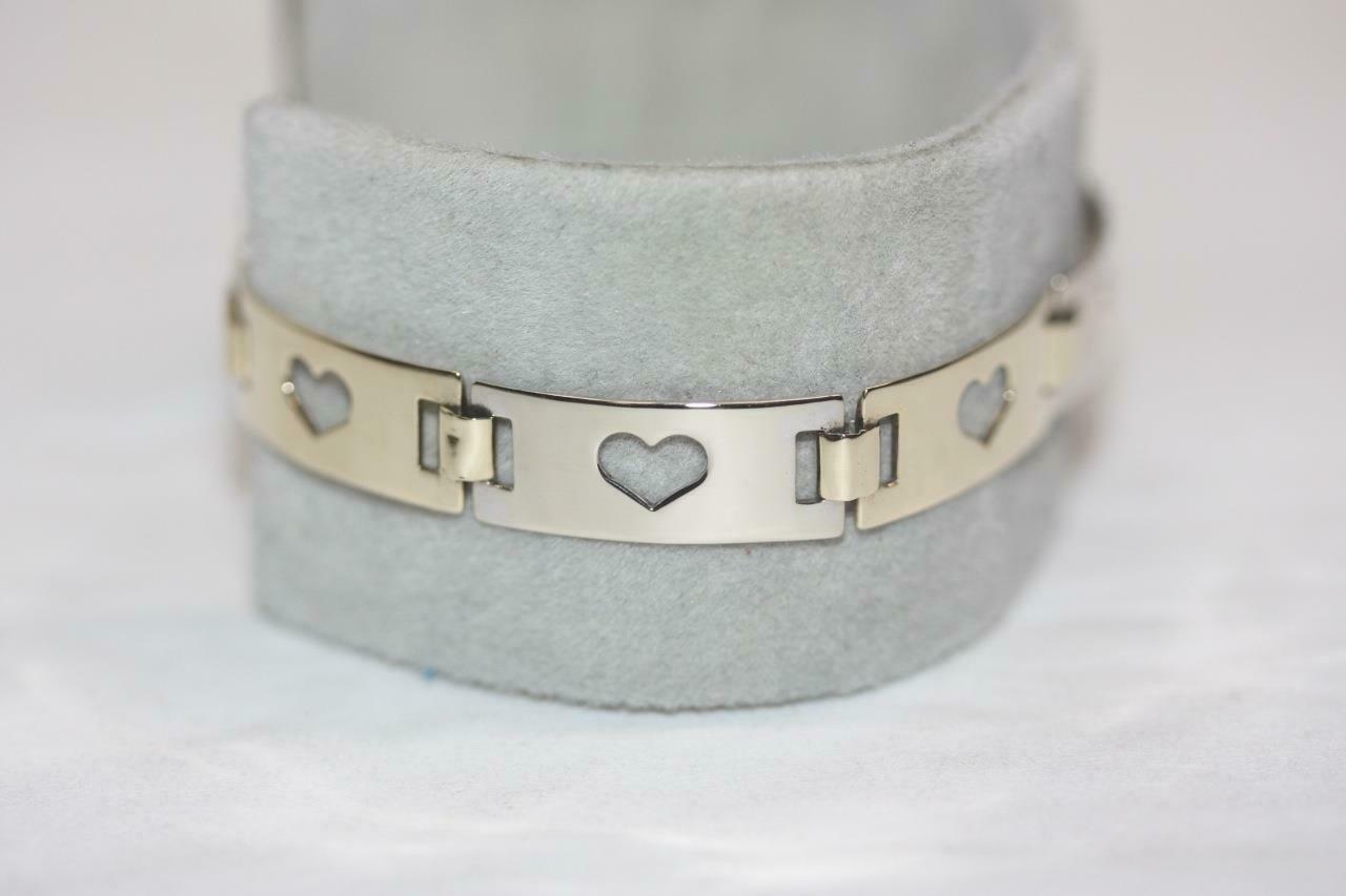 Offered for sale is a fine open heart link bracelet; crafted in 14 karat yellow and white gold.