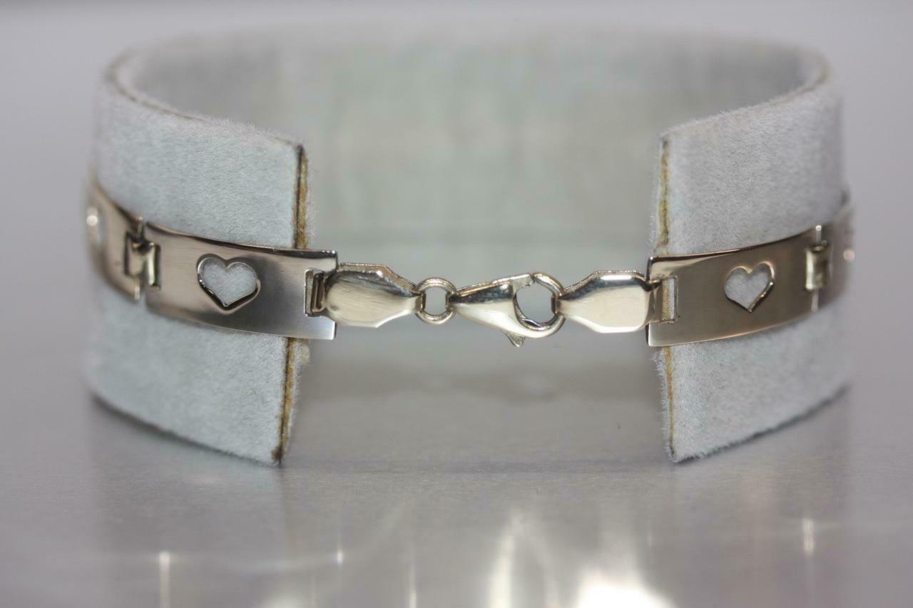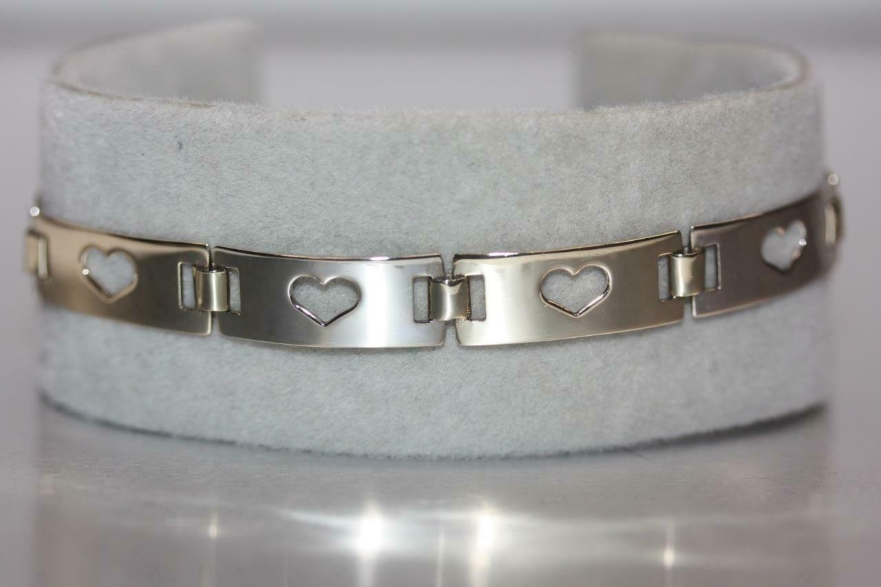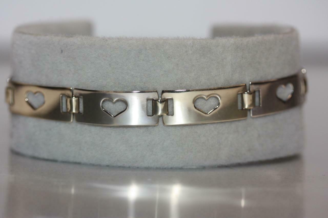 Fine 14K Yellow/ White Gold Rectangle Open Heart Bar Link Bracelet - 7" Long