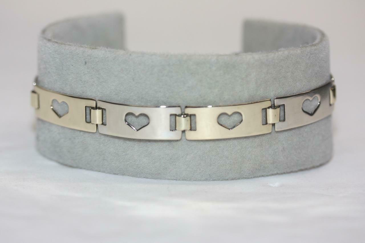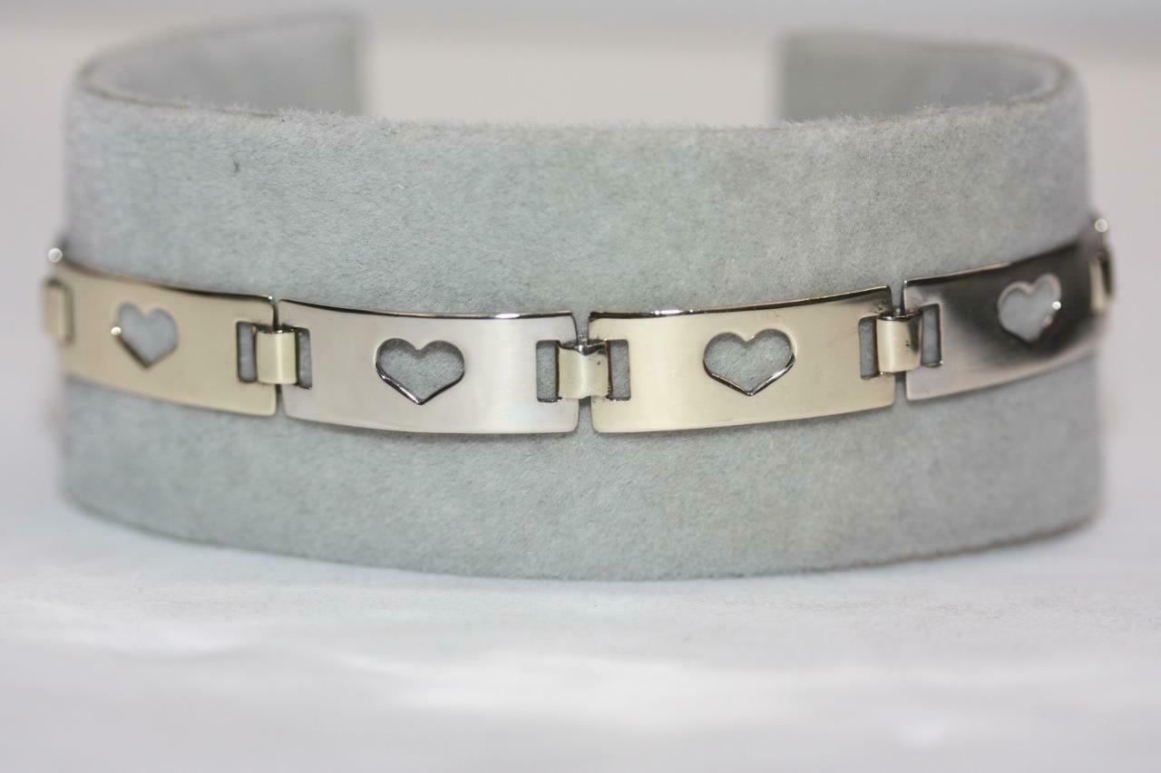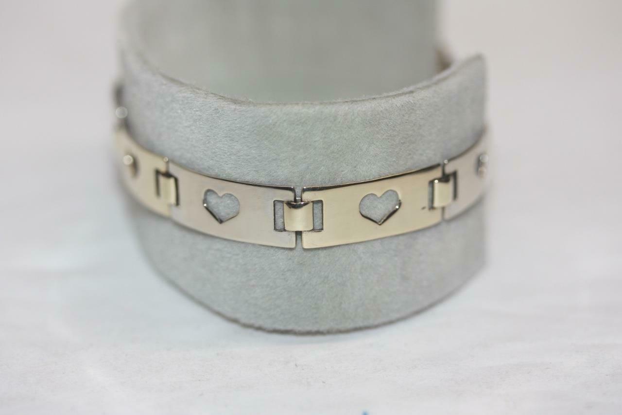 Fine 14K Yellow/ White Gold Rectangle Open Heart Bar Link Bracelet - 7" Long