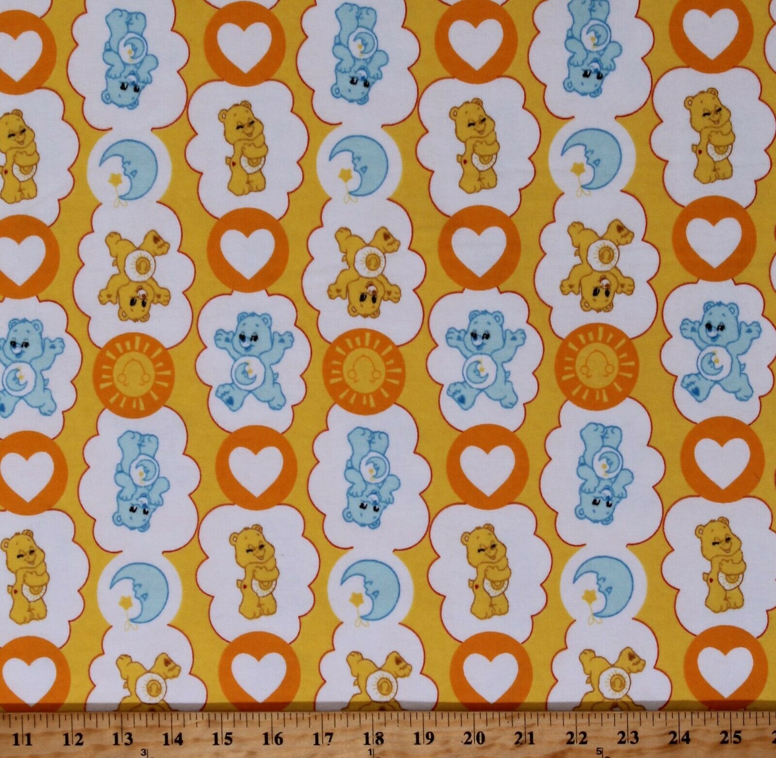 Flannel Care Bears Funshine and Bedtime Bear Hearts Clouds Moons Kids Yellow Cotton Flannel Fabric Print by the Yard (44010103B-01)
