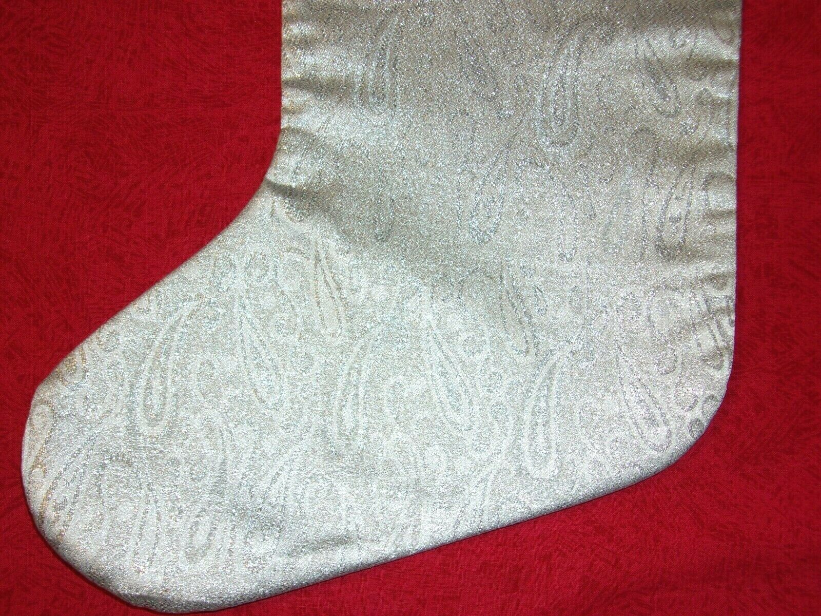 Silver Tone Lined Polyester Metallic Large 17" Christmas Stocking With Cuff New