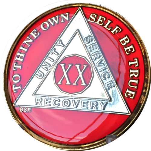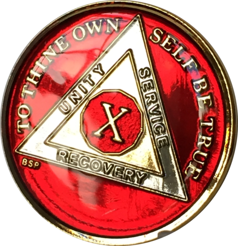 Mandarin Red Tri Plate Gold & Nickel Plated AA Medallion Chip Years 1 - 10 15 20