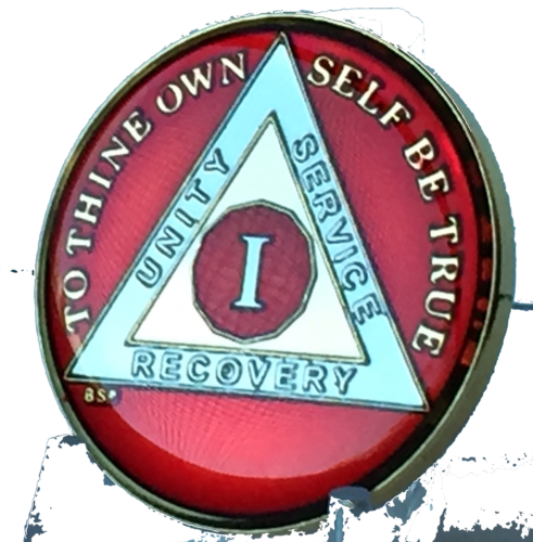 Front of the chip has whatever year you choose and the Three Legacies triangle. It also has Unity Service and Recovery and To Thine Own Self Be True. The back has The Serenity Prayer.
