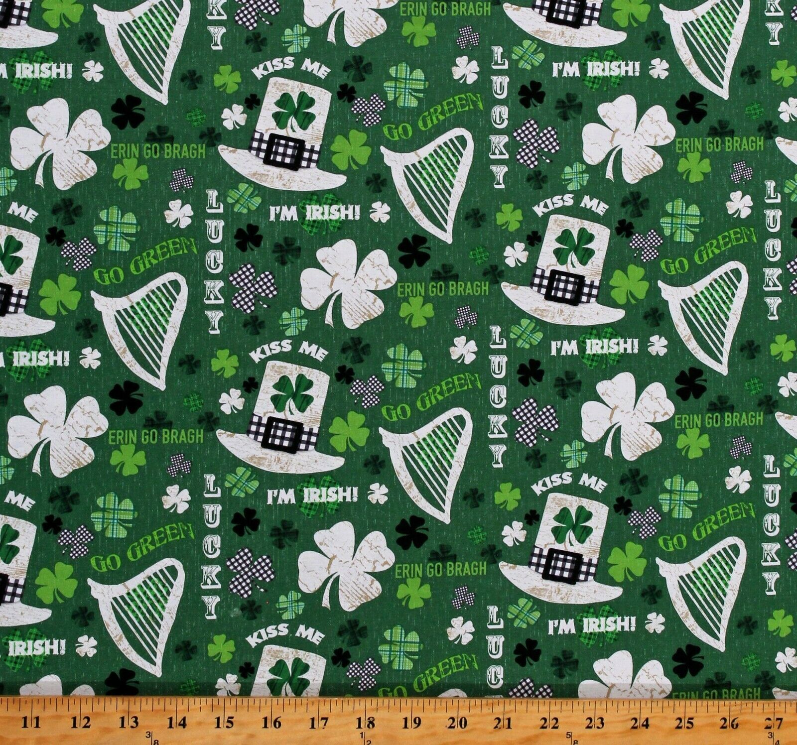 Cotton St Patrick's Day Irish Words Phrases Green Fabric Print by Yard D568.96