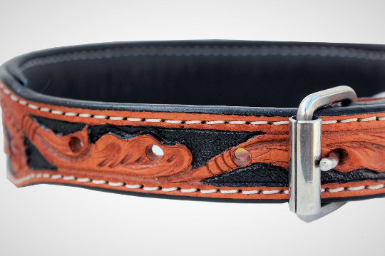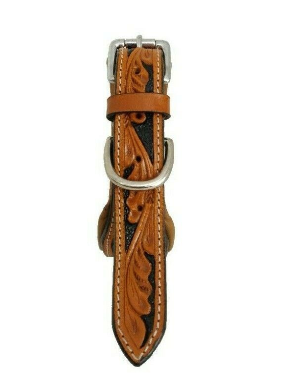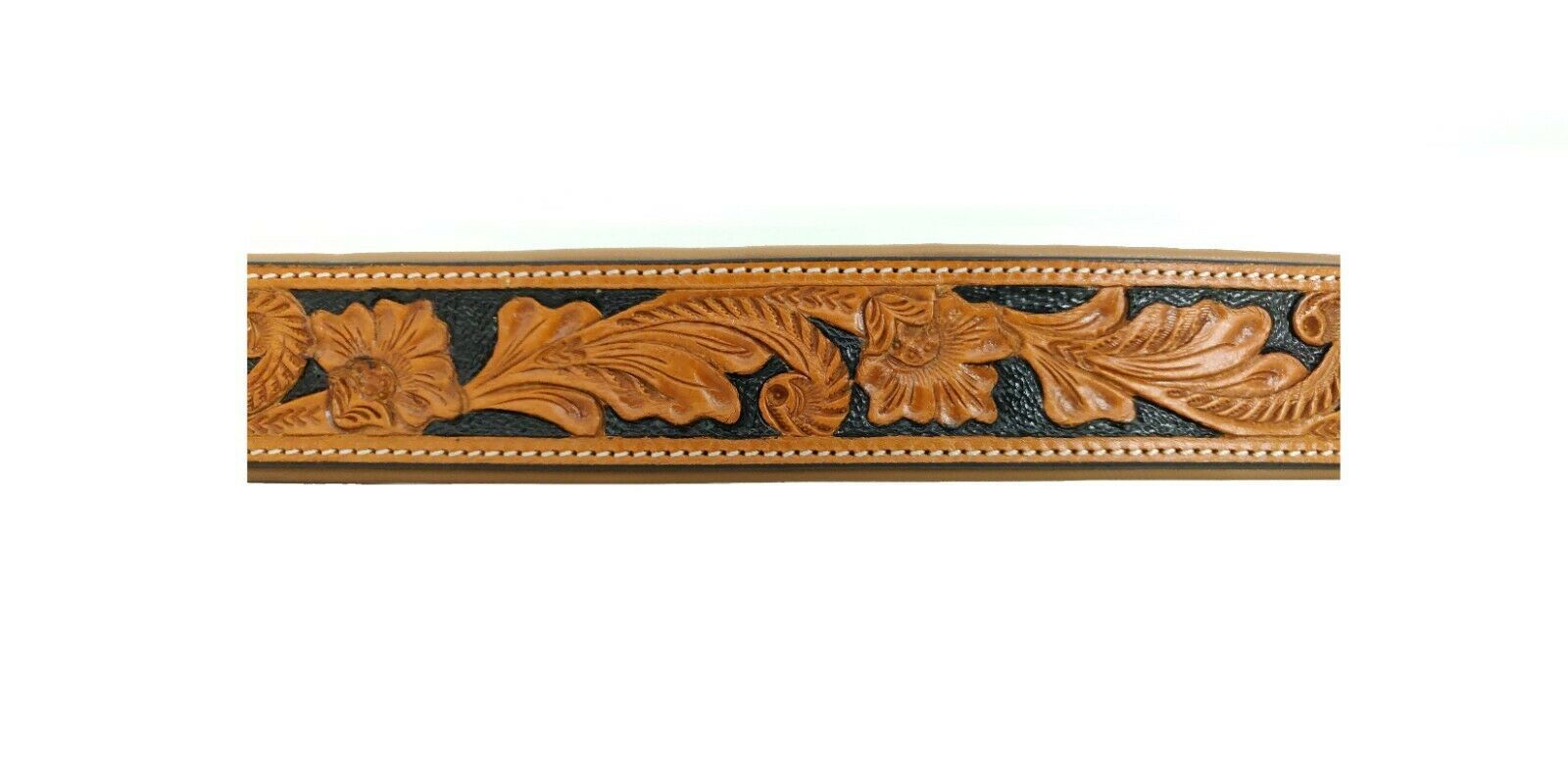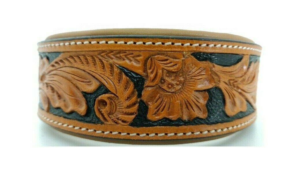 Shwaan Dog Collar Floral Pattern Genuine Tooled Leather M 15"-19" Christmas Day