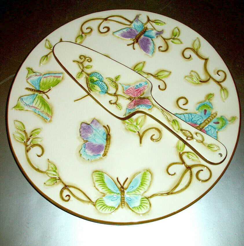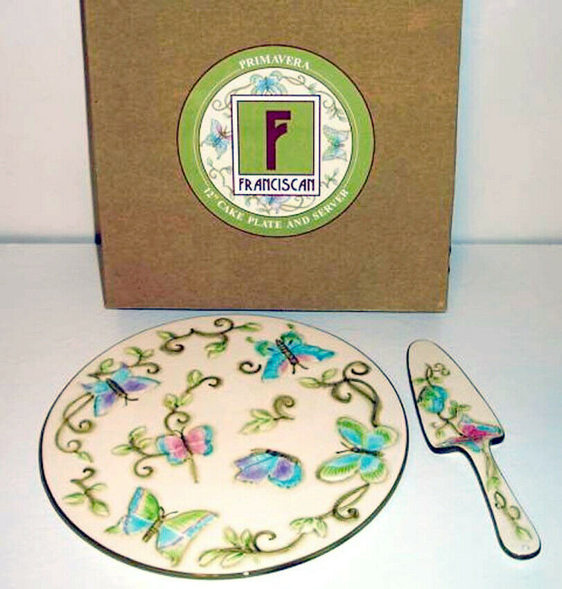 Wedgwood Franciscan Primavera 12" Cake Plate & Server Hand Painted Butterfly New