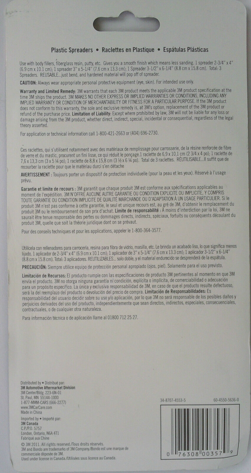 Spreaders for use with body fillers, fiberglass resin, putty, etc. Gives a smooth finish which means less sanding, three pack of different sizes, reusable, flexible. For the best automotive products in the world, use only 3M!