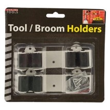 Great for hanging and organizing tools fishing rods brooms mops and other household items in the garage or a closet this 2-piece wall mount tool and broom holders set features flexible plastic clamps with rotating rubber pieces that secure items on a wall mountable back piece. Each holder has two clamps. Holders measure approximately 5.375"x 1.625" x 1.625". Screws included.