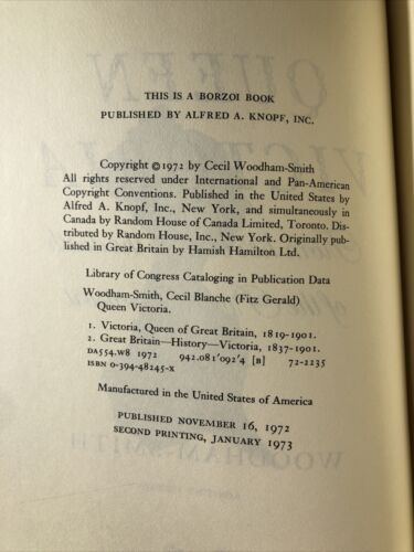 QUEEN VICTORIA by CECIL WOODHAM-SMITH - HARDCOVER - FIRST EDITION / 2nd PRINTING