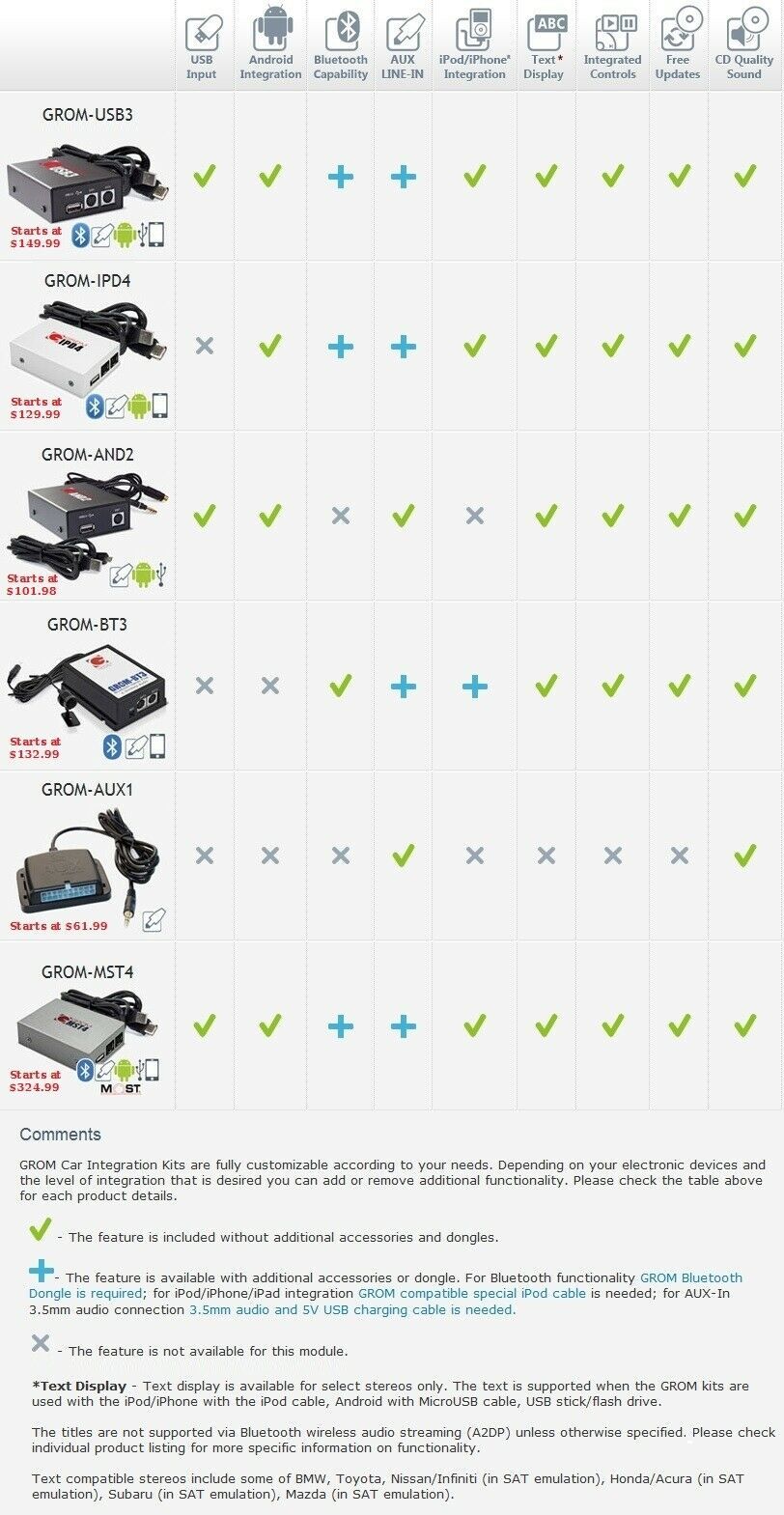 wireless audio controls. The Bluetooth kit is specific to the Grom interface, so you do have to buy the Grom version if you want Bluetooth.