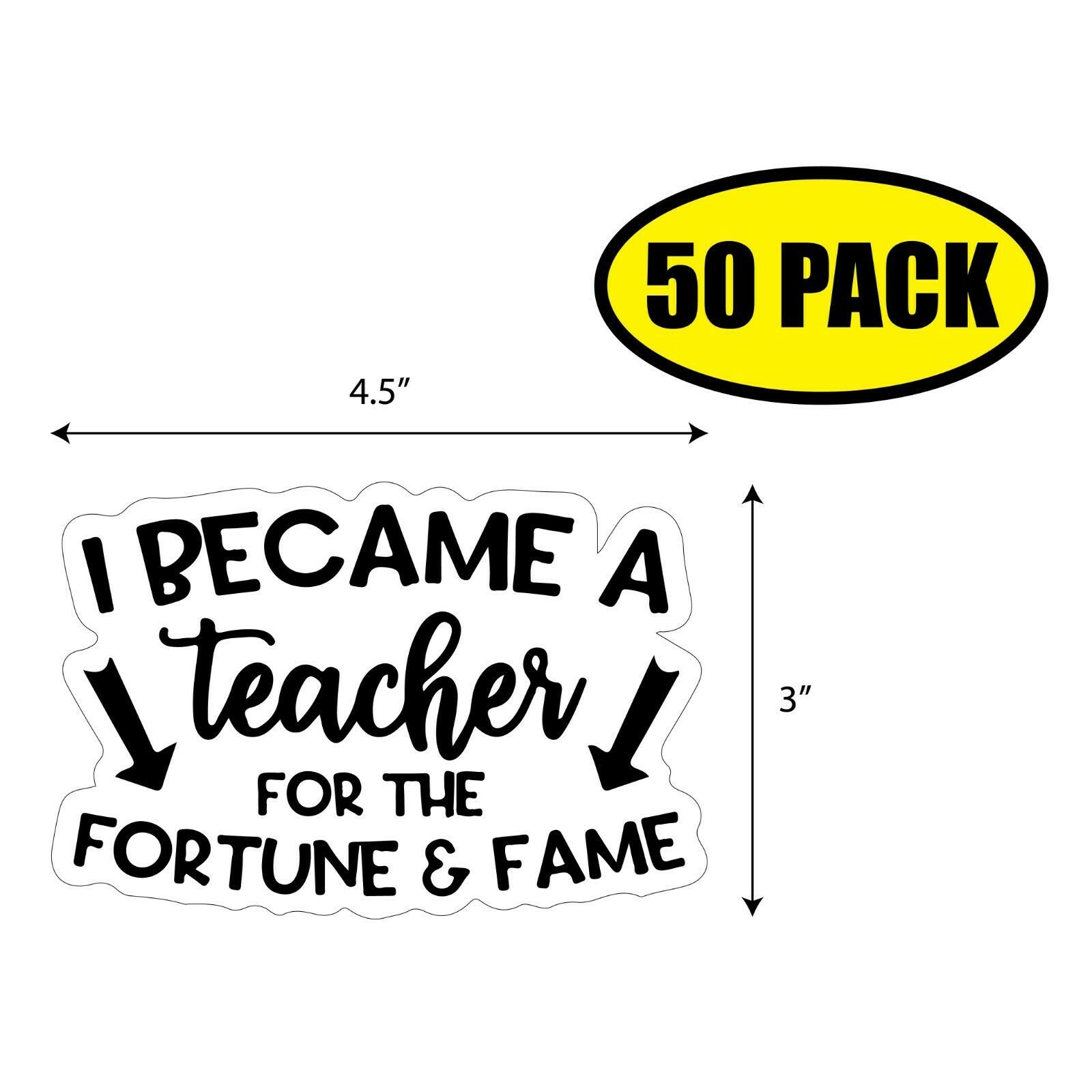 50 PACK 4.5" x 3" BECAME A TEACHER FAME Sticker Decal Humor Funny Gift VG0058