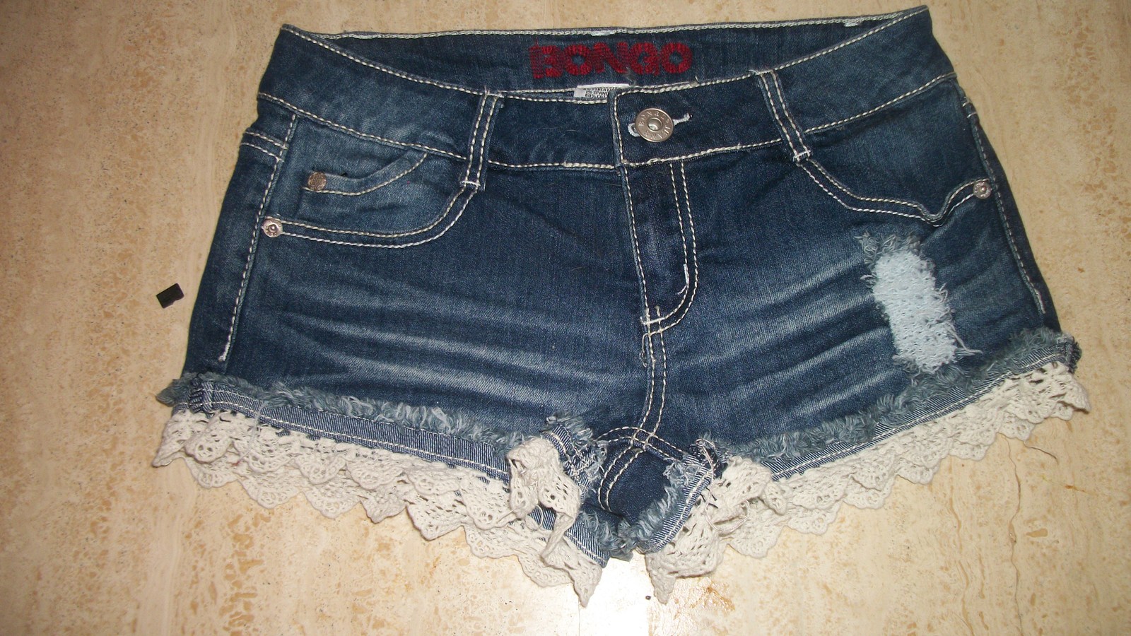 A nice pair of women's denim shorts size 5. 5 pocket style made by Bongo. Have a nice touch with white crochet design at bottom. Comes from a non-smoking home with super fast shipping! Any questions message me through this listing. Thank You.