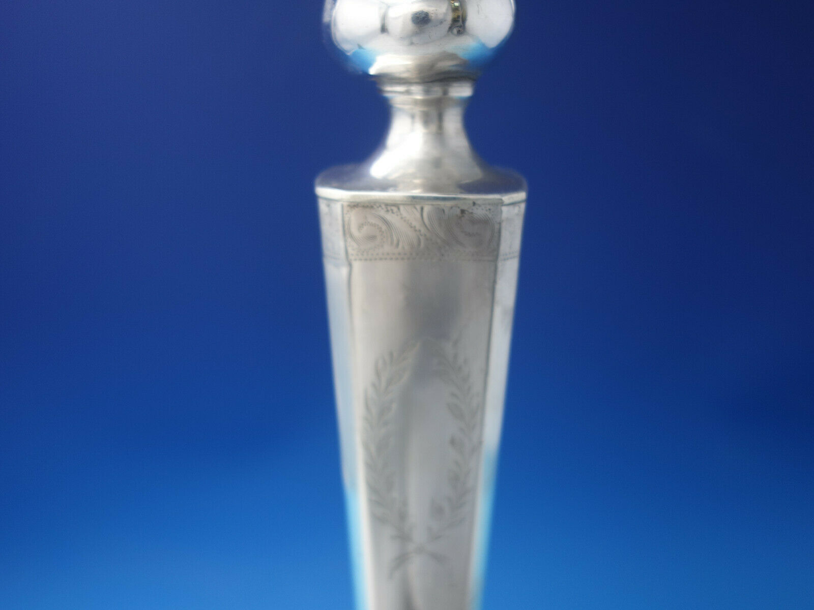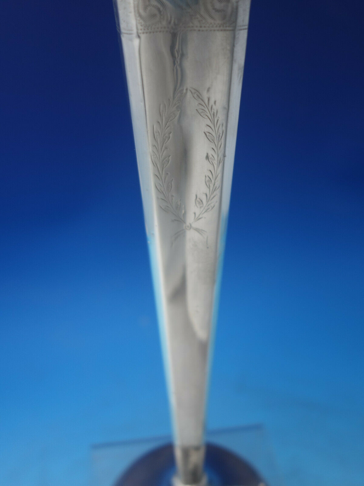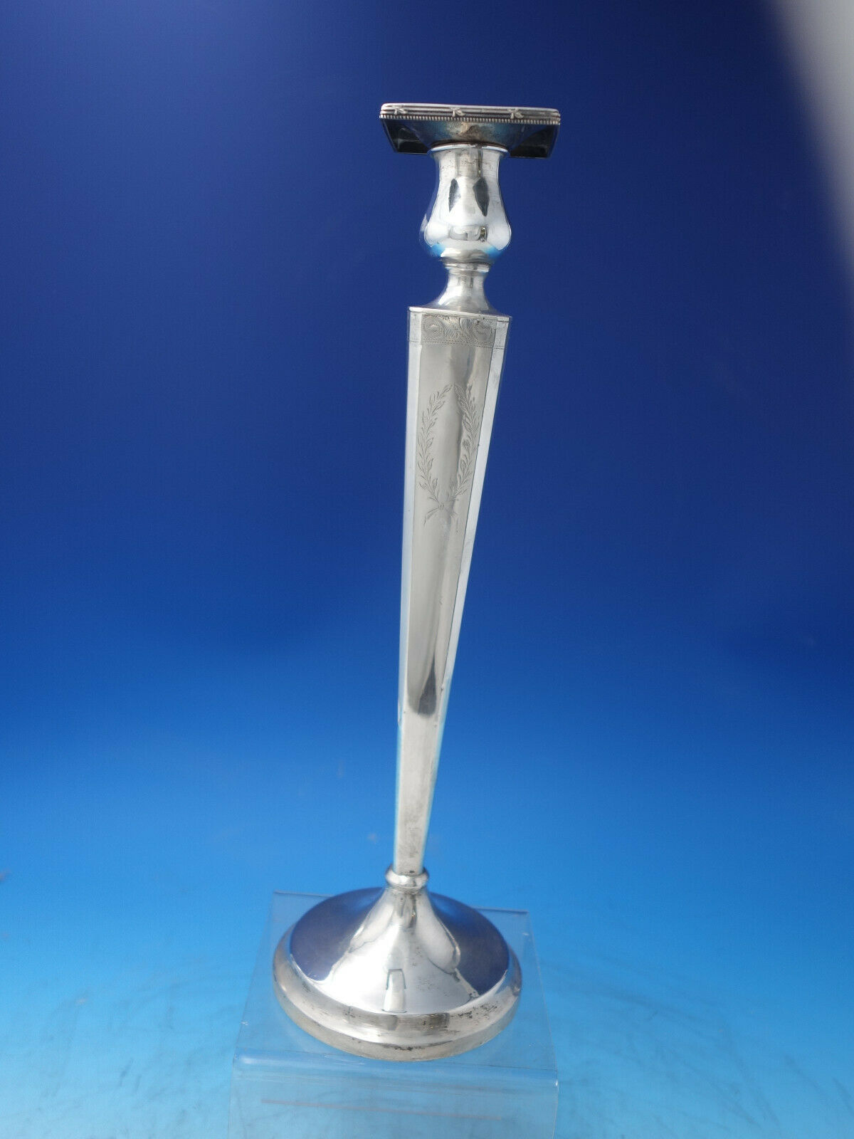 Set of 4 Sterling Silver, circa 1910, weighted Tall Candlesticks with bright-cut wreath design by N.S. Co., measuring 14" (height) x 4" (base). They are not monogrammed and are in good vintage condition with a few small dings/imperfections, as expected with age.