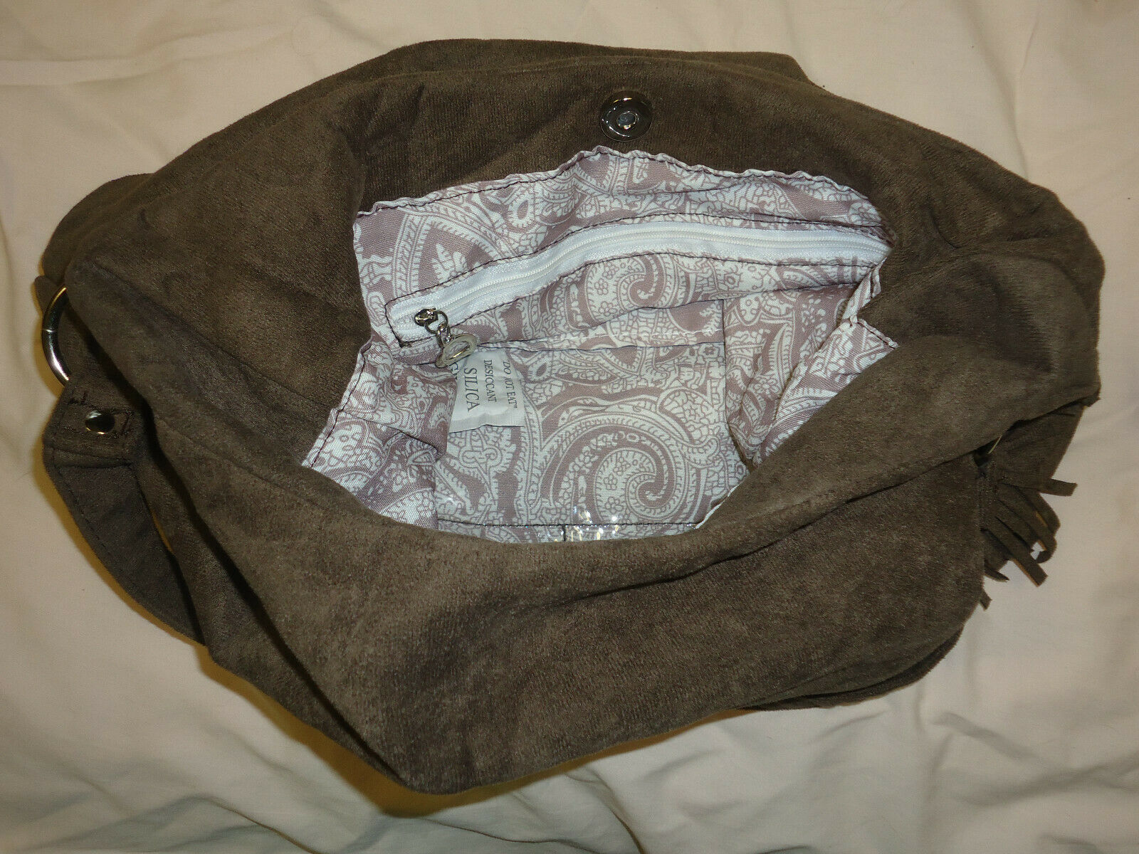 Bella Russo dark brown purse with detachable fringe accent NEW
