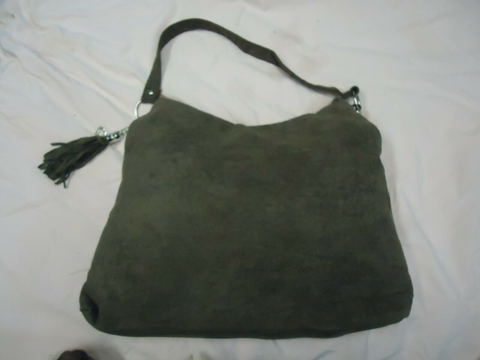 Bella Russo dark brown purse.....3 pockets on the inside , 1 is zippered........ Faux suede........ 17" wide ... 15" high ..... Logo on Front..... NEW