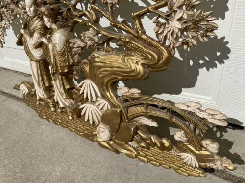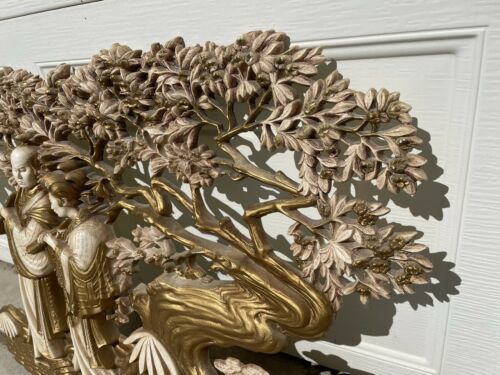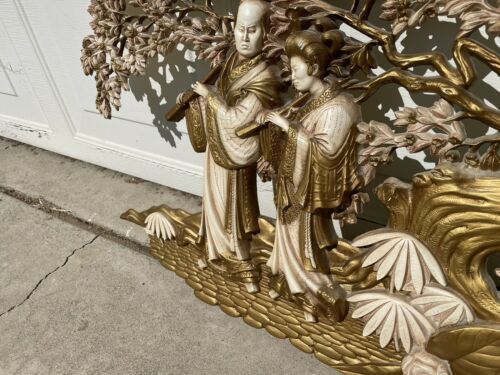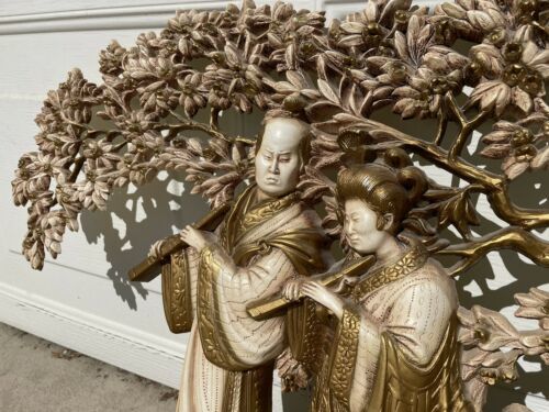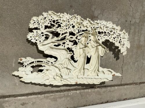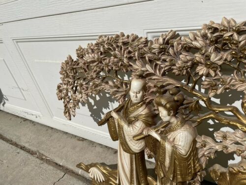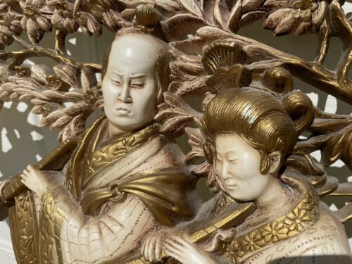 VINTAGE 1973 BURWOOD PRODUCTS BEIGE/GOLD ASIAN COUPLE #498 WALL HANGING/MOUNT good shape for its age I see no major damage please see pictures approximately 34 x 22