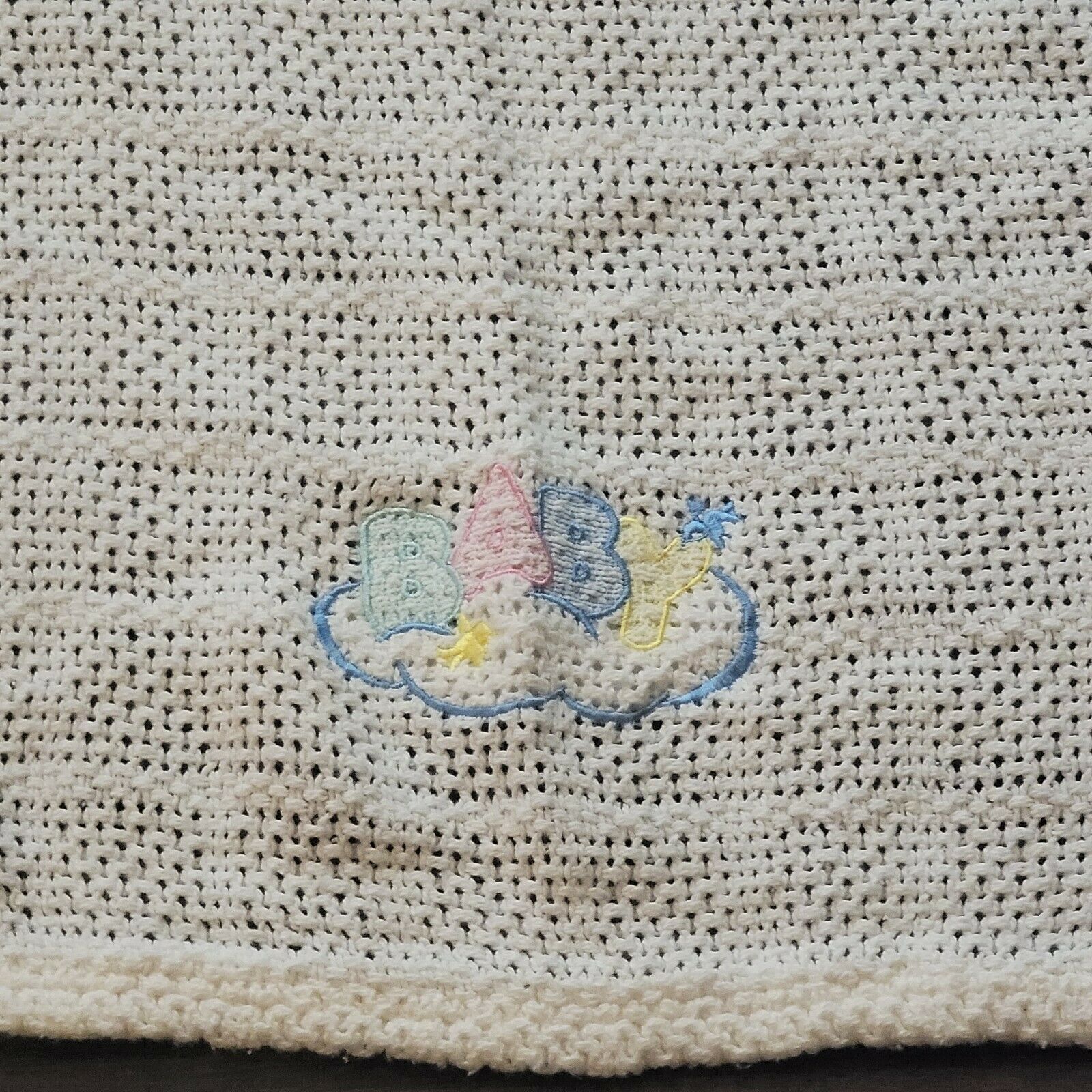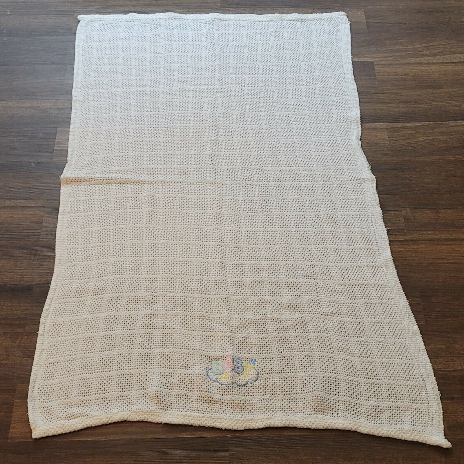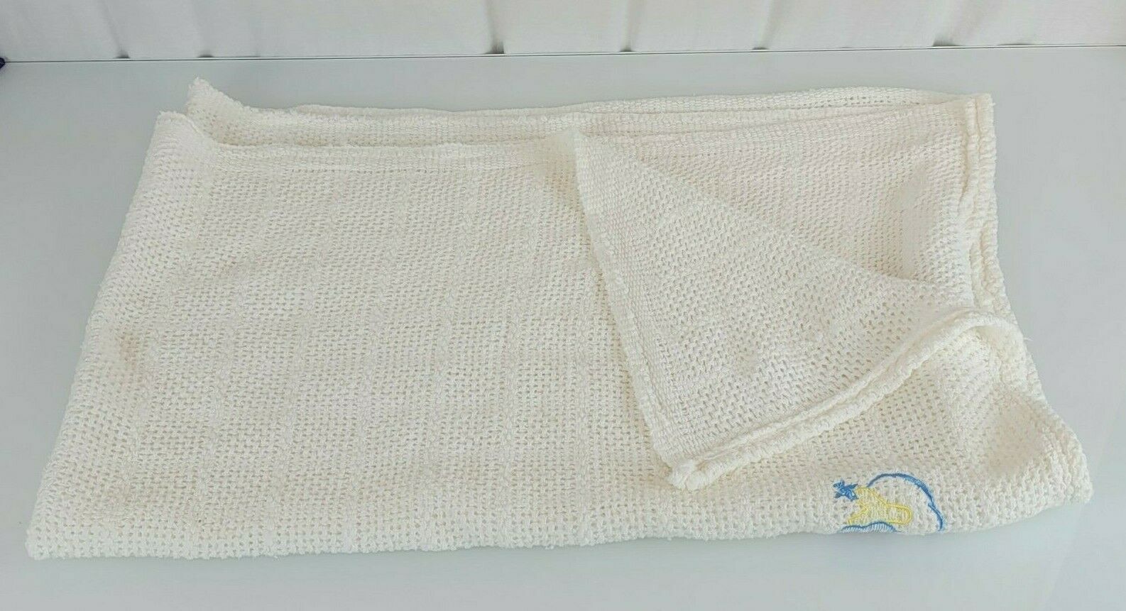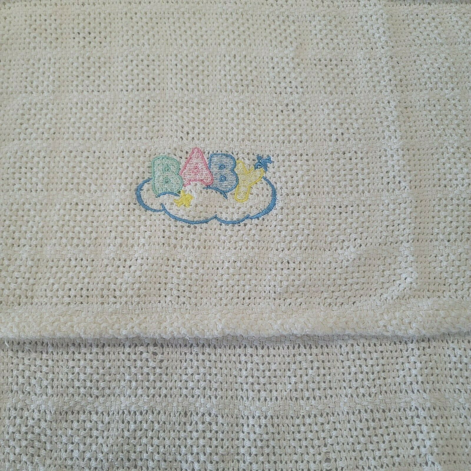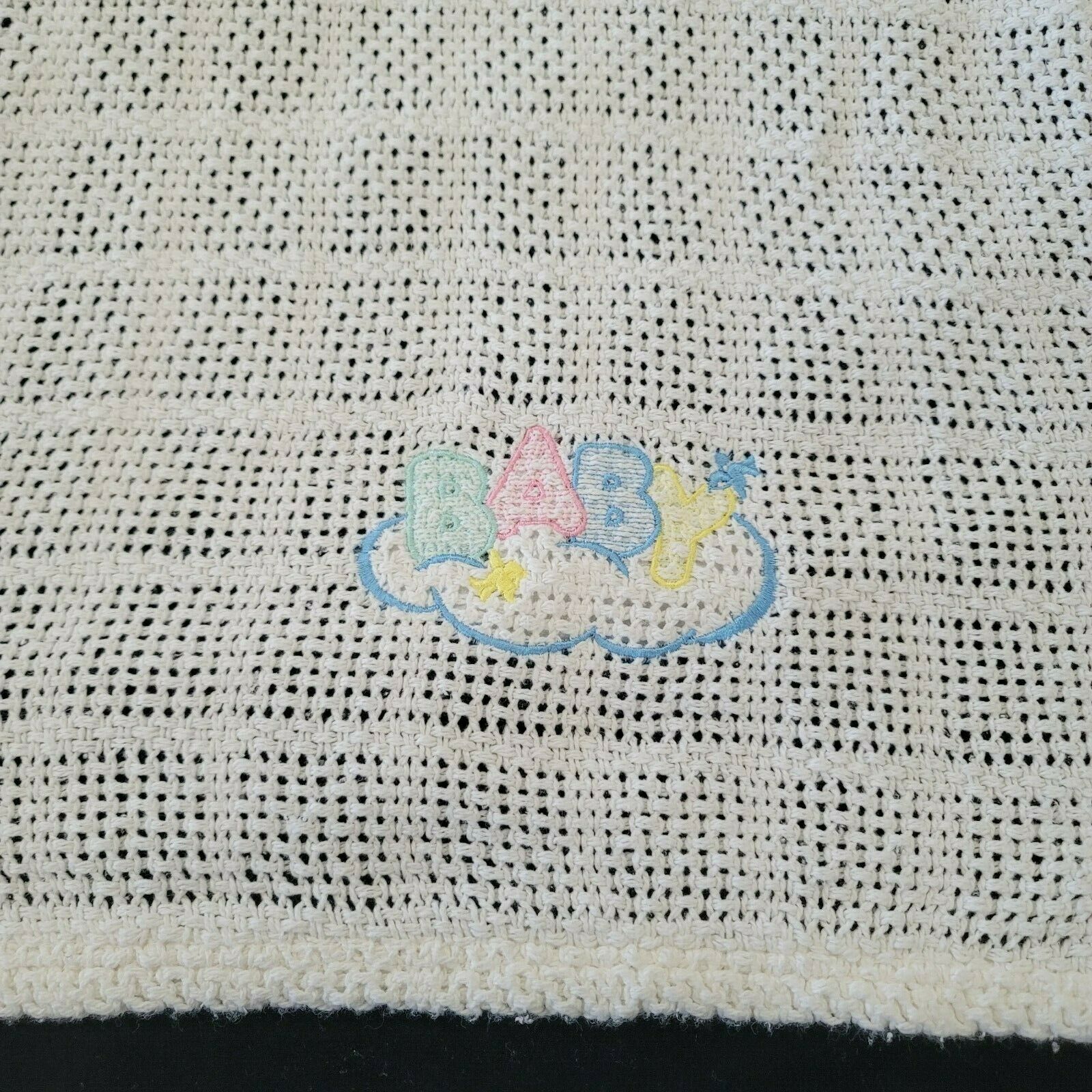 Vintage Owen Rn 62027 Baby Blanket White Cotton Thermal Open Waffle Weave Cloud