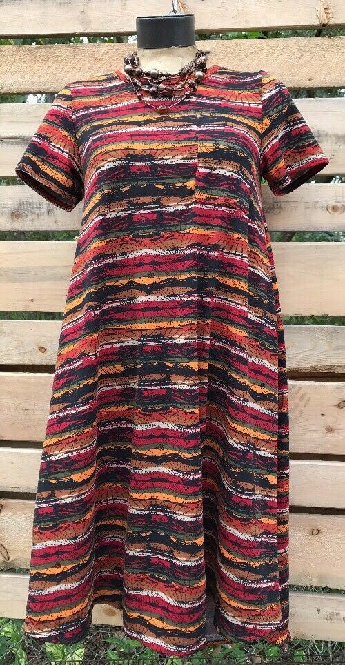 LULAROE CARLY WM. XS BOHO SOUTHWEST STYLE STRETCH KNIT DRESS CORAL BRWN BLK GRN