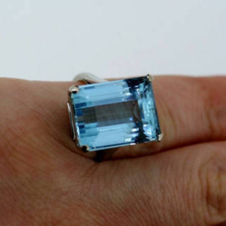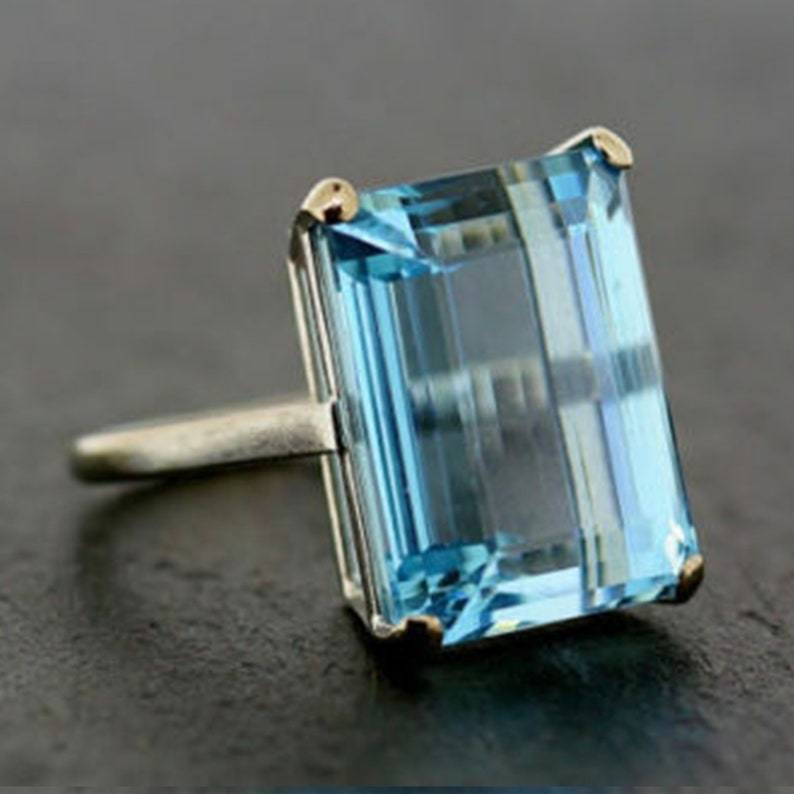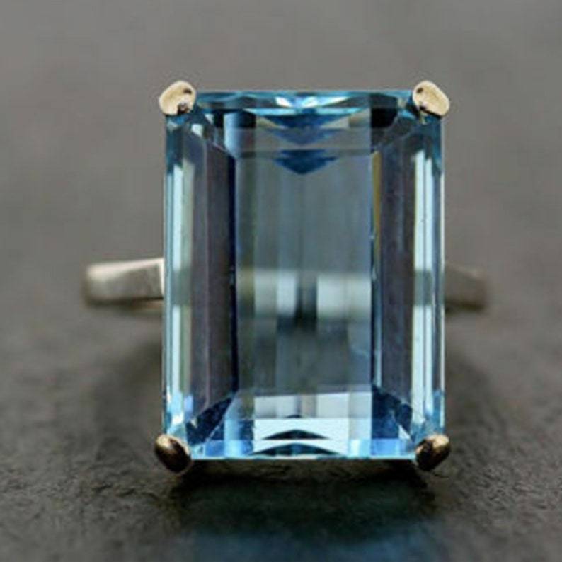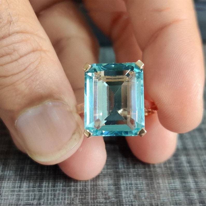 9.00Ct Blue Emerald Cut Aquamarine Cocktail Ring,Solitaire Ring,Big Diamond Ring
